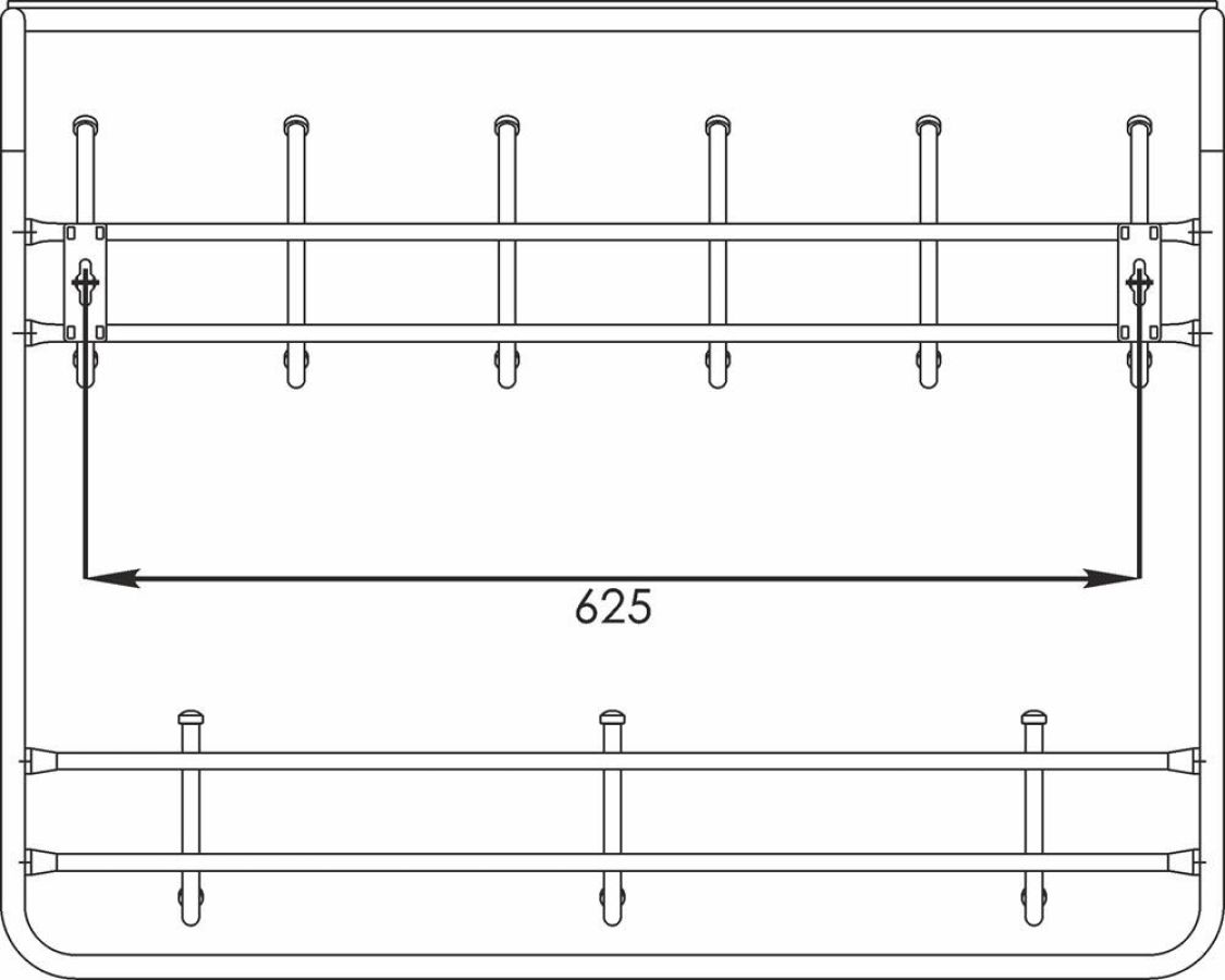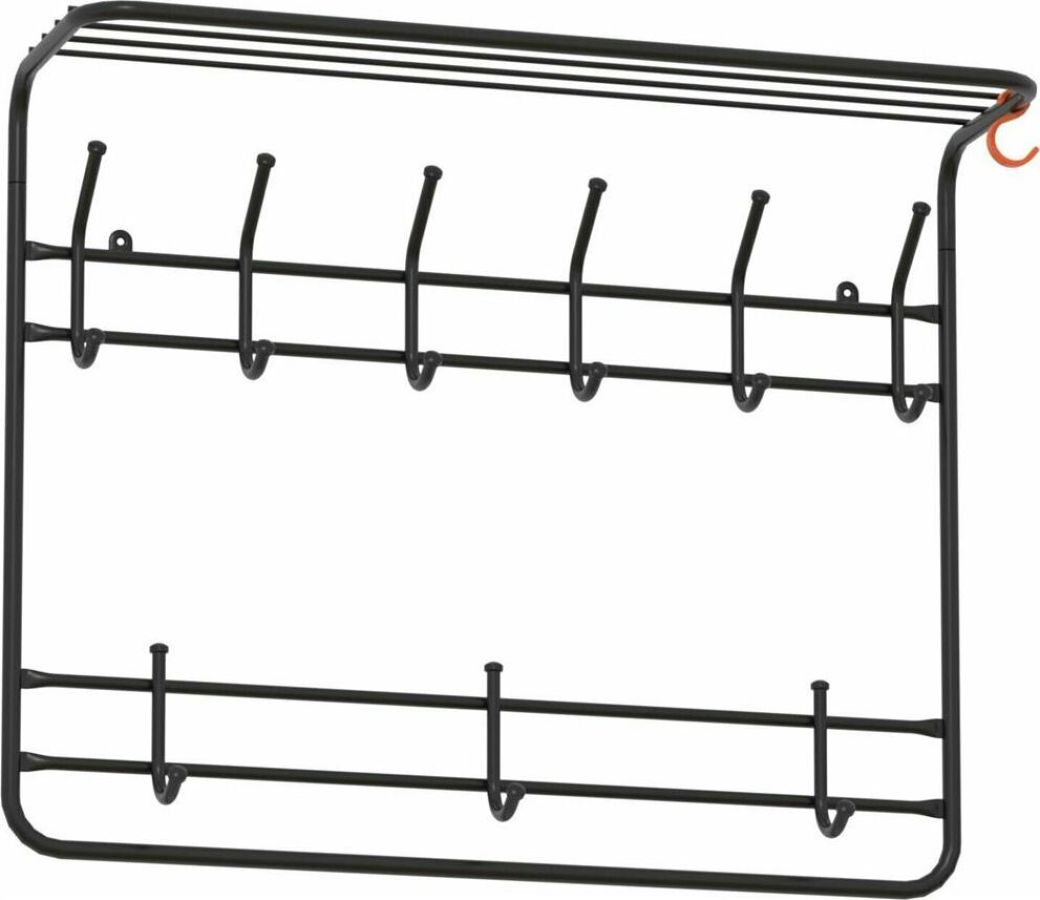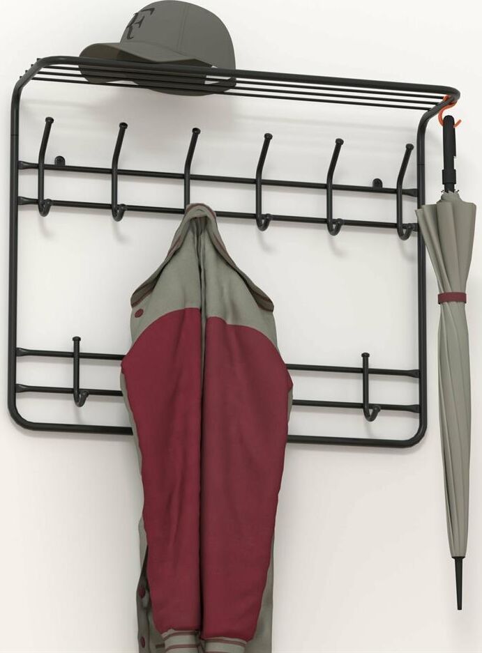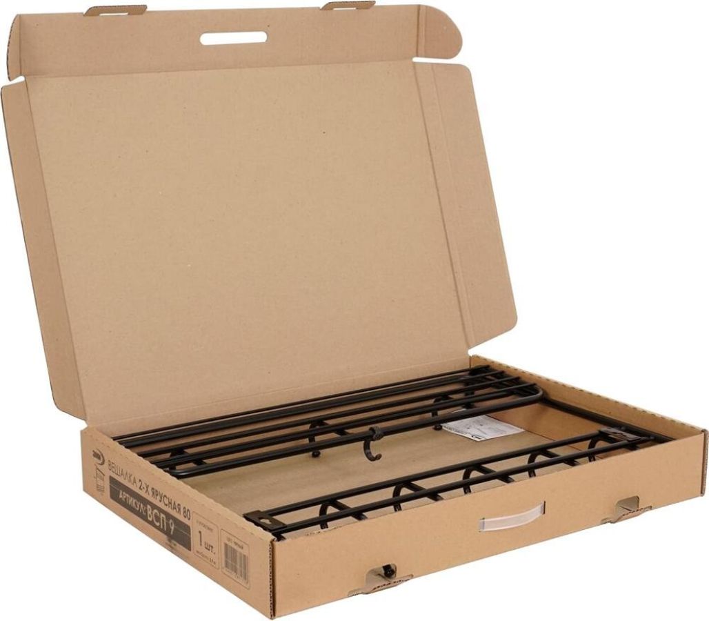Материал — Сталь, полимерное покрытие. Индивидуальная упаковка — 755х530х100 мм. Габариты (Д*Ш*В) — 73х58х22 см. Максимальная нагрузка, кг — до 5 кг на крючок.
