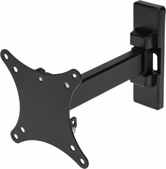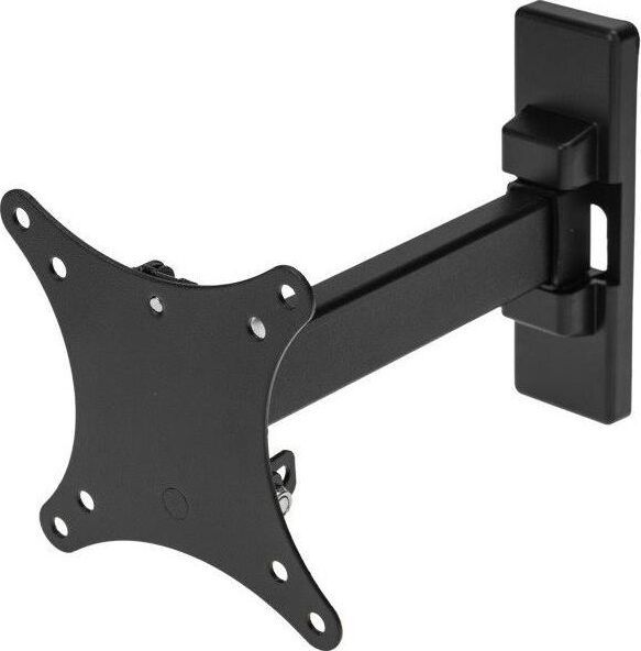 Технические характеристики: Тип: наклонно-поворотный (одно колено) Назначение: для LED/LCD/PLASMA телевизоров Цвет: черный Угол наклона: -10°/+3° Угол поворота: 180° Мин. диагональ: ТВ 13 дюймов Макс. диагональ: ТВ 27 дюймов Максимальный вес оборудования: 20 кг Тип монтажа: настенный Расстояние от стены до кронштейна: 44 -192 мм Поддержка крепления стандарта VESA: 75х75/100х100 Крепление: в комплекте
