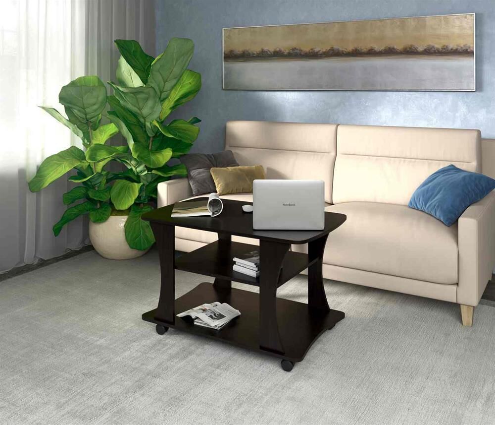Стол журнальный СЖ-1 - выполнен в классической форме журнального стола. Стол размещен на колесиках для легкого и удобного перемещения. Классическая модель СЖ-1 для гостиной и спальни отличается практичностью и имеет сглаженные формы. Большая столешница со скругленными краями и две полки, одна из которых находится на колесном основании. Плавный ход и поворотные колесики облегчают транспортировку. Зона использования: Гостиная. Материал: Подстолье - ЛДСП (16 мм), кромка - ПВХ кромка - миламин, столешница ЛДСП. Размеры: 900х570х580 мм.