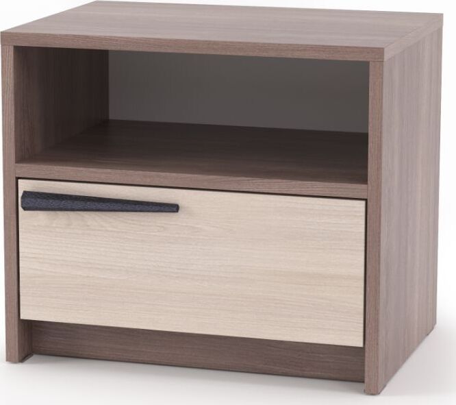 Тумба прикроватная Оптима - удобная и практичная система хранения вещей в спальной комнате или детской, которая станет идеальным помощником для хранения необходимых мелочей под рукой. Сочетание декоров темного и светлого дерева подчеркнет современный стиль Вашего интерьера. Наиболее выигрышно тумба Оптима будет смотреться в интерьере в сочетании с другими предметами мебели из данной коллекции. Материал каркаса: ЛДСП шимо темный Материал фасадов: ЛДСП шимо светлый Ручки: пластик Направляющие ящиков: роликовые Цвет фасадов Шимо светлый Цвет каркасов Шимо темный Материал фасадов ЛДСП Материал каркасов ЛДСП Тип мебели Тумба прикроватная Срок службы (мес.) 120 Гарантия (мес.) 24