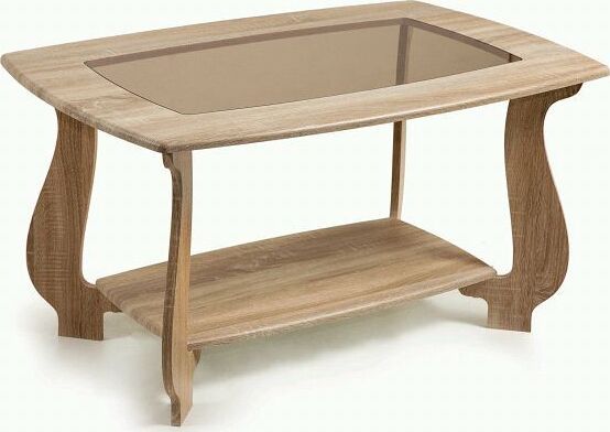 Журнальный стол СЖ-23 с тонированным стеклом смотрится элегантно, благодаря извилистым ножкам. У столика есть нижняя столешница, которую можно использовать для хранения журналов.Столешница и полка имеют толщину 16мм и выполненны из МДФ, ножки стола ЛДСП. Размер ШхГхВ (980х650х520) мм Стиль: Современный. Материал каркаса: ЛДСП. Поверхность: МДФ/стекло без рисунка. Форма стола: прямоугольный. Раскладной: нет. Вес: 14.28 кг. Цвет корпуса: Дуб Сонома