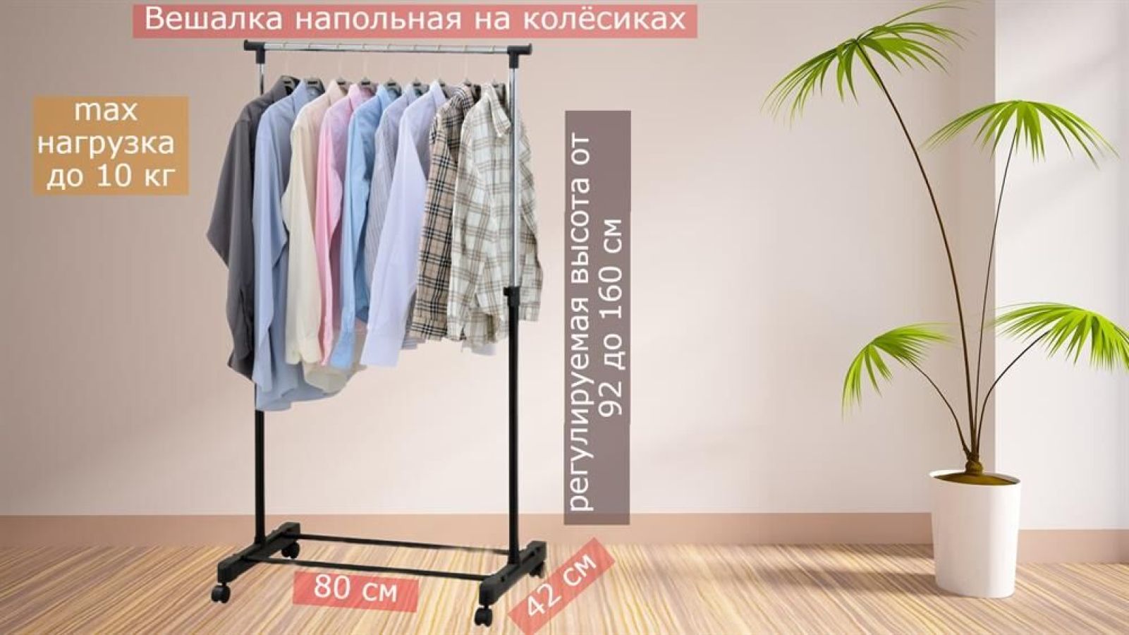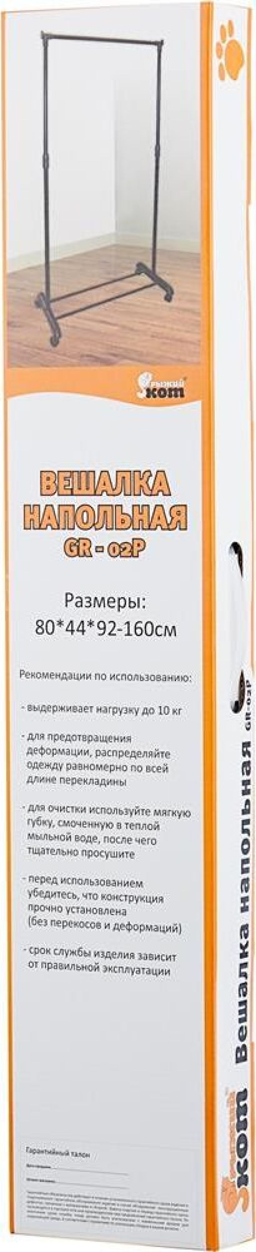 Вешалка напольная GR-02P, размер: 80x42x92-160 см Предназначена для удобства хранения одежды, сохраняет вещи в идеальном состоянии Выдерживает нагрузку до 10 кг Регулировка высоты перекладины Простота сборки Материал: окраш.металл, пластик Упаковка: цветная коробка