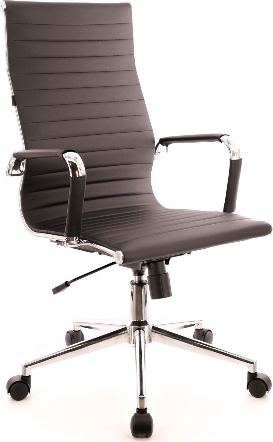 Подлокотники: Металлические с накладками из экокожи. Подголовник: Нет. Поясничная поддержка: Да. Механизм качания: ТопГан - механизм качания с возможностью фиксации кресла в рабочем положении. Крестовина: Хромированная сталь O 660 мм. Газ патрон: 3 категории (Germany DIN 4550). Ролики: Стандарт BIFMA 5,1 (США). Ролик O 50мм. Для паркета. Каркас: Монолитный. Материал обивки: Экокожа. Материал набивки: Отсутствует. Тип кресла: Для руководителя. Цвет: Черный. Допустимая нагрузка 120кг.