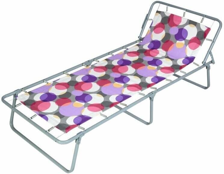 Габаритные размеры изделия (длина*ширина*высота), мм : 1524х617х248 Каркас: труба стальная ф18х1,0; полимерное покрытие. пружина. Матрас: ткань 100% х/б или ткань 45% п/э – 55% хлопок, плотность 108 – 111 г/м2, ткань полипропиленовая, крепление к каркасу осуществляется с помощью пружин. Регулирование подголовника: 4 позициии Вид и размер упаковки (длина х ширина х высота, мм): 630х401х696, в коробу по 4шт, ящик из гофрированного картона, пакет полиэтиленовый. Максимальная нагрузка: 60 кг Вес изделия, кг: нетто – 4,3; брутто – 18,0.