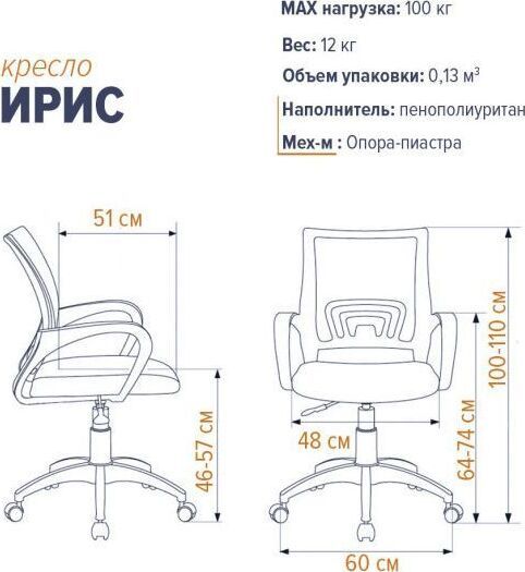 Крестовина: «Паук»600 мм. Подлокотники: пластик. Обивочные материалы: ткань серии «TW».Газпатрон: стандартный . Механизм: Топ-Ган (мезханизм качания с регулировкой жесткости и фиксацией в рабочем положении)/ Опора-пиастра. Ролик: пластик Размеры: В 1000-1110 Ш 480 Г 510 Габариты: Размеры коробки: 615/330/615 мм. Объем коробки: 0.13 куб. м. Вес: 12кг.
