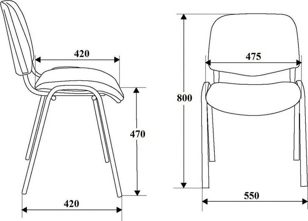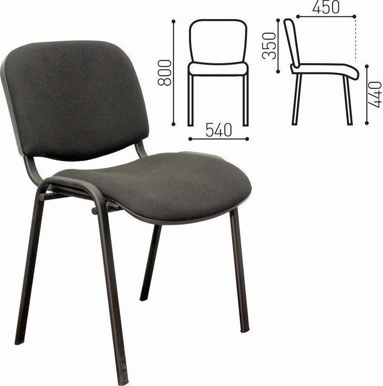 Рама : металлическаая с толщиной трубки 1.2 мм, окрашенная порошковой краской в черный цвет.Обивка стула: ткань износопрочная. Размеры: В 775 Ш 530 Г 450 Вес: 6,6