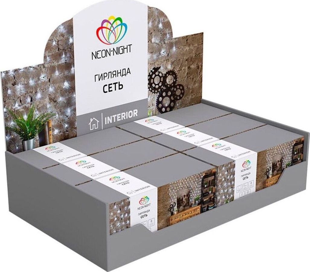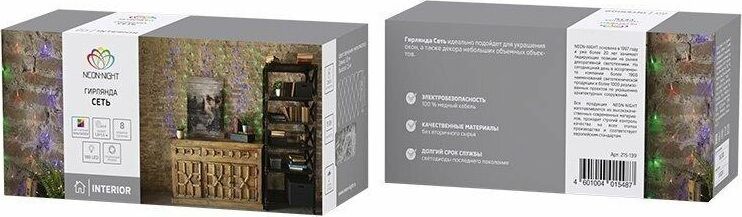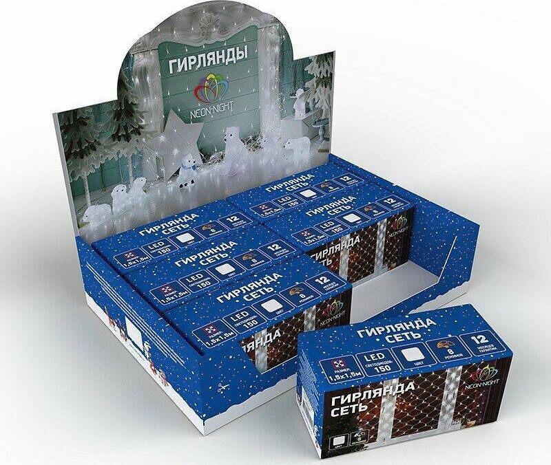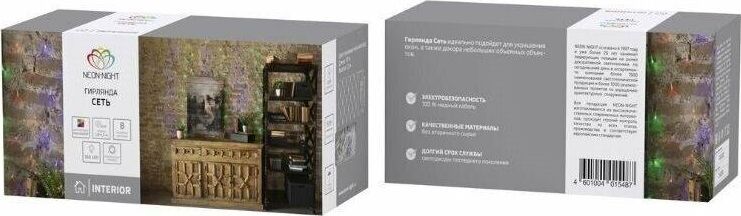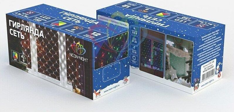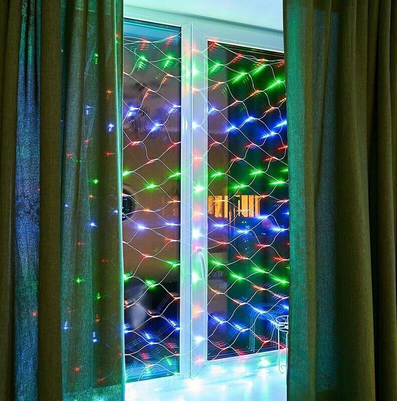 Гирлянда - сеть светодиодная 1,8х1,5м, свечение с динамикой, прозрачный провод, диоды МУЛЬТИКОЛОР.