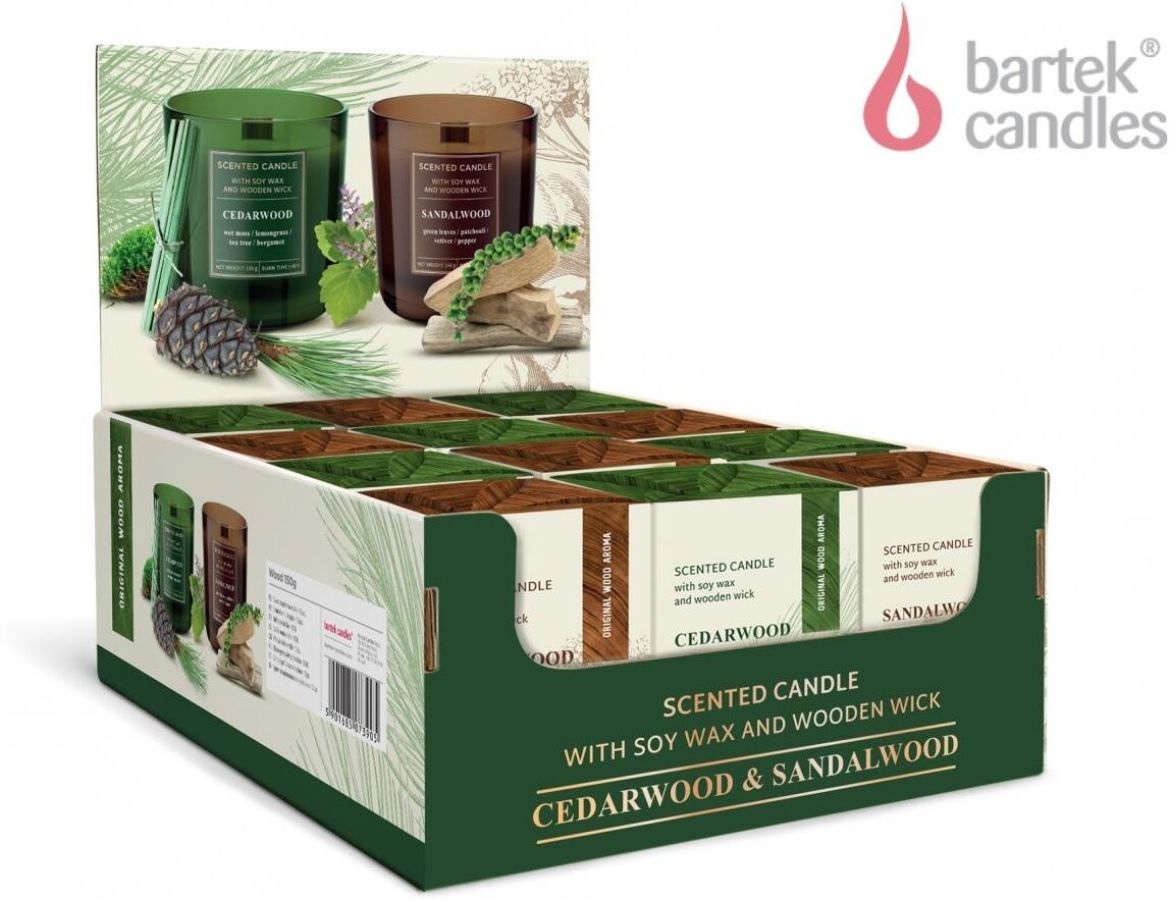 Коллекция Wood candle - это сочетание магии пламени и двух восхитительных древесных ароматов. Пламя от деревянного фитиля создает волшебную атмосферу. Иногда оно искрится и шипит, как поленья в камине.КЕДР Сладкий, теплый, древесный аромат. В ароматерапии описывается как успокаивающий и помогающий прояснить сознание. Чрезвычайно изысканно сочетается с ароматическими нотами бергамота, лемонграсса и чайного дерева, которые снимают напряжение. Между основными нотами мы заключили непостоянство запаха влажного мха. Идеально подходит, когда хочется расслабиться...Группа ароматов: теплые, древесные Композиция аромата: верхние ноты: бергамот, лемонграсс ноты сердца: влажный мох, зеленые листья базовые ноты: кедр. САНДАЛОВОЕ ДЕРЕВО Таинственный, древесный аромат ладана, известный как афродизиак. Интенсивный, возбуждающий чувства. В нашей изысканной композиции он сочетается со свежестью зеленых листьев и едва уловимыми ароматами пачули и ветивера. Мы дополнили все это щепоткой зеленого перца. Если вы хотите влюбиться...Группа ароматов: древесно-ладанные, теплые Композиция аромата: верхние ноты: свежие листья, пачули ноты сердца: мускус, влажная вода база: сандаловое дерево