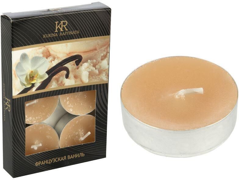 Материал: парафин П-2, фитиль 100% х/б, краситель, металл, ароматизатор Размер 1 свечи: 3,75*3,75*1,14 см В комплекте: 6 шт Индивидуальная упаковка: картонная коробка Аромат: французская ваниль Время горения: 2-4 часа Хранить при температуре не выше +25, не тушить водой, подсвечник держать чистым. Использовать вдали от детей и животных. Горящие свечи не оставлять без присмотра