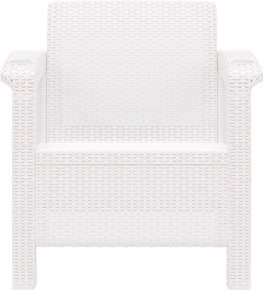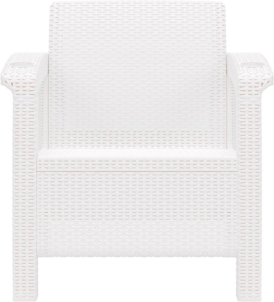 Кресло произведено из высококачественного полипропилена, имитирующего плетение из ротанга. Кресло имеет одно посадочное место, допустимая нагрузка на одно посадочное место - 106 кг . На подлокотниках дивана расположены отверстия для напитков.Кресло может стать идеальным решением по оформлению зоны отдыха в доме, на садовом участке, в офисном помещении или в кафе. Благодаря цветовым решениям, кресло подойдет под любой интерьер. Кресло упаковывается в индивидуальную упаковку, инструкция по сборке прилагается.Зону отдыха также можно дополнить журнальным столиком и диванами серии «Ротанг-плюс».