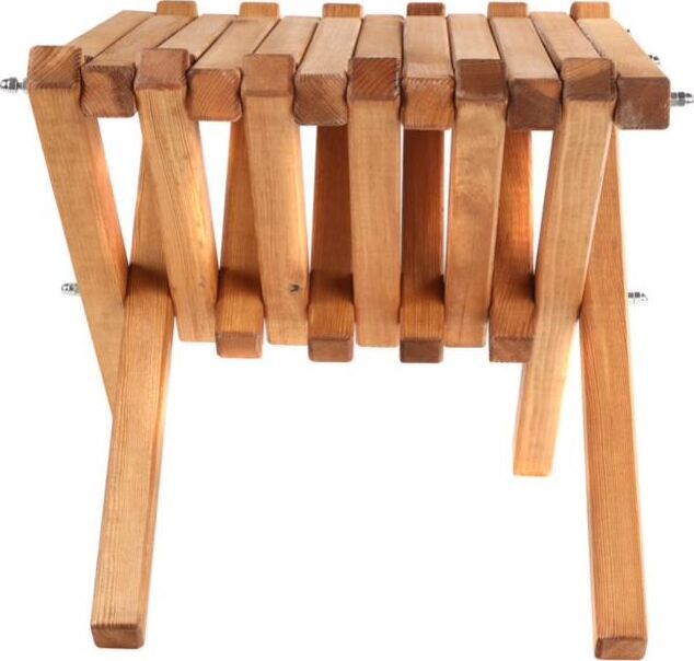 Размер в разложенном виде (ШхГхВ): 420х470х410 мм Размер в сложенном виде: 950х420х80 мм Материал: массив сосны Цвет: дуб Мебель покрыта атмосферостойкой пропиткой на водной основе и предназначена для эксплуатации на улице. Допустимая нагрузка – 100 кг Страна производства – Беларусь Гарантия 12 месяцев Поставка в разобранном виде. Комплектация: изделие, инструкция, фурнитура.