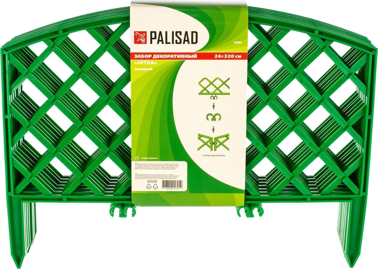 Забор декоративный Palisad «Сетка» 65006 зеленого цвета, 24 х 320 см, состоит из 7 секций и позволяет зонировать озелененный участок. С его помощью можно украсить дачную территорию; обозначить границы грядки или зоны отдыха, оформить клумбу, оградить кустарник или дерево. Преимущества: Установка не требует усилий; заостренные ножки за несколько секунд фиксируются в грунте. Забор не разрушится под воздействием солнечных лучей или дождя, т.к. изготовлен из прочного полипропилена. Благодаря подвижному замковому соединению можно оформить участок любой формы.