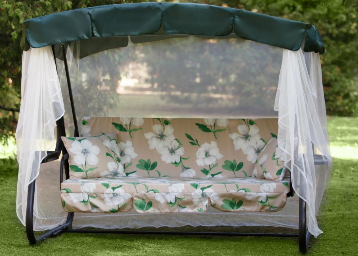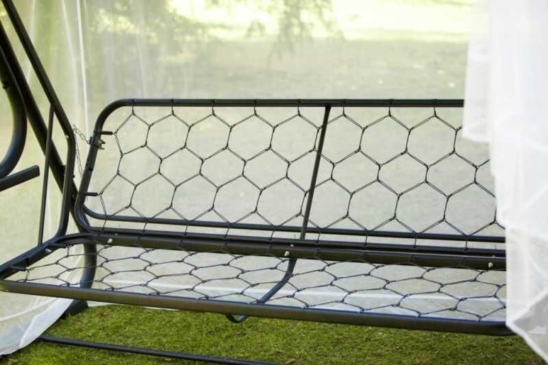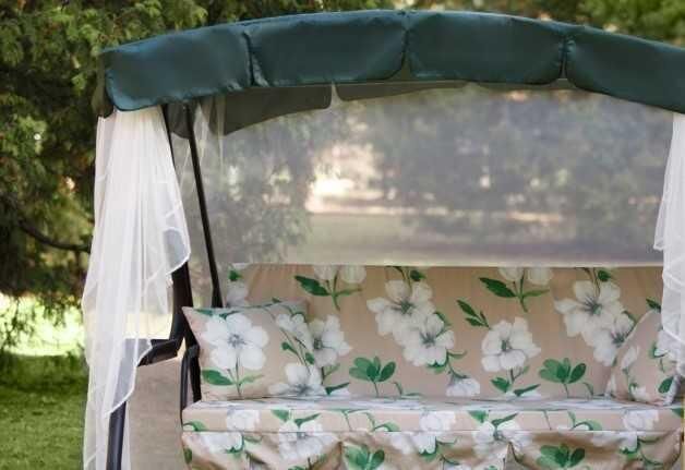 Габаритные размеры изделия (длина х ширина х высота), мм: 2365х1380х1815. Габаритные размеры сиденья,спинки и тента (длина х ширина), мм: размеры сиденья: 1782х532. размеры спинки: 1782х532. размер тканевого тента: 2130х1430. Максимальная нагрузка, кг: 280. Каркас: труба стальная O 51х1,4мм; полимерное покрытие; полка - 2 шт. Регулировка спинки: осуществляется звеньями цепи на требуемый угол наклона, с возможностью фиксации в разложенном положении. Размеры упаковки, мм: 626х300х2025. Вес изделия: нетто, кг – 51,1. брутто, кг – 54,5.