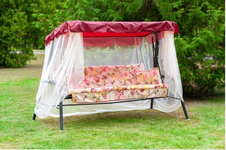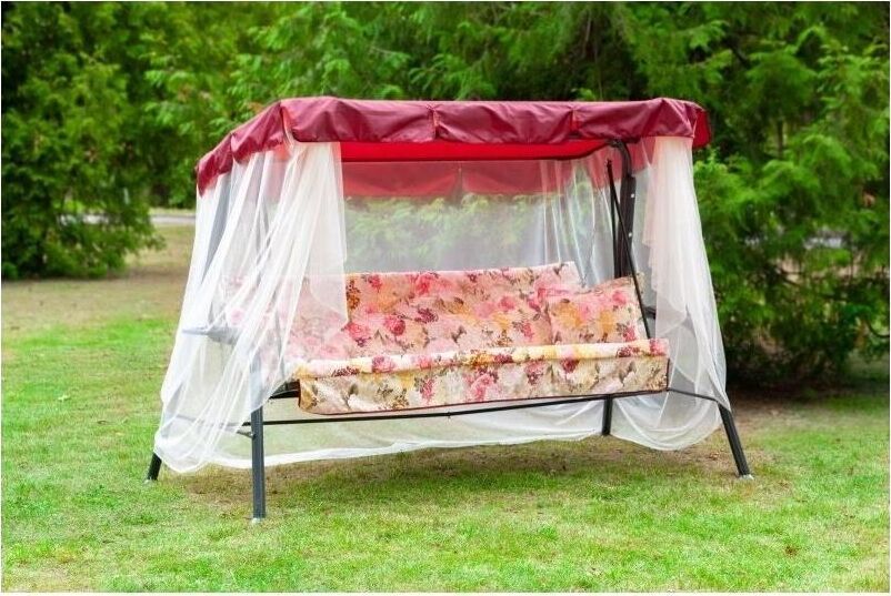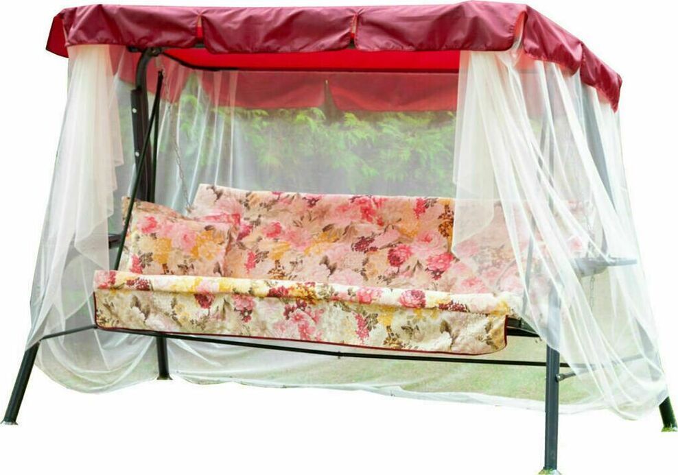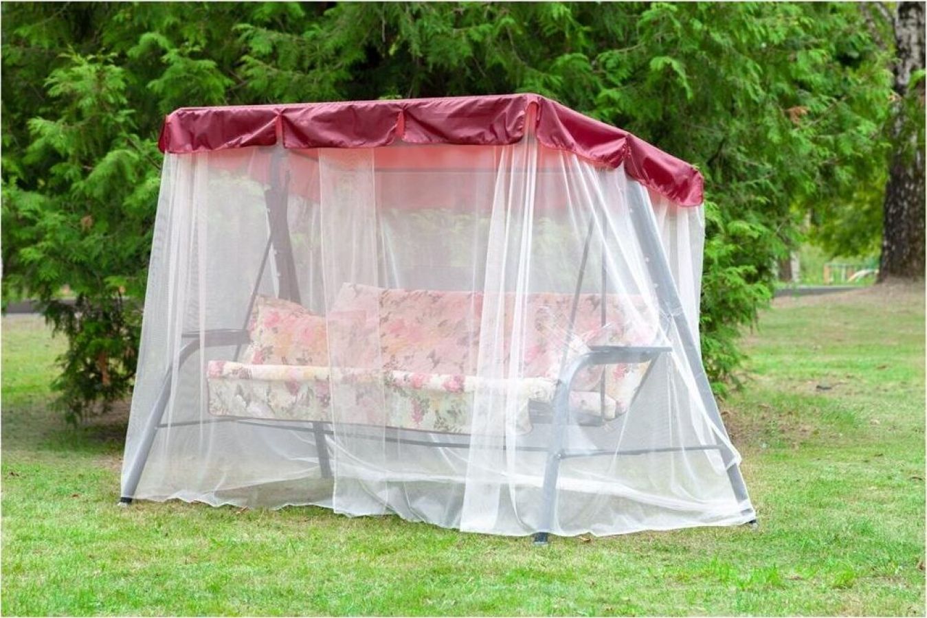 Габаритные размеры изделия (длина х ширина х высота), мм: 2310х1260х1478. Габаритные размеры сиденья,спинки и тента (длина х ширина), мм: размеры сиденья: 1706х497. размеры спинки: 1706х497. размер тканевого тента: 1840х1020. Максимальная нагрузка, кг: 210. Каркас: труба стальная O45х1,4мм; полимерное покрытие; полка - 2 шт. Мягкий элемент: ткань 45% п/э – 55% хлопок, плотность 108-111г/м2, наполнитель мягкого элемента (листовой поролон 50мм +синтепон), наполнитель подушек (крошка поролона).Основание спанбелл, декор тафтинг. Подушки – 2шт. Тент с сеткой противомоскитной: ткань с водоотталкивающей отделкой 100% п/э плотность 120г/м2. Противомоскитная сетка пришита к тенту. Регулировка спинки: осуществляется звеньями цепи на требуемый угол наклона. Размеры упаковки, мм: 526х186х1966. Вес изделия: нетто, кг – 35,2. брутто, кг – 35,8.