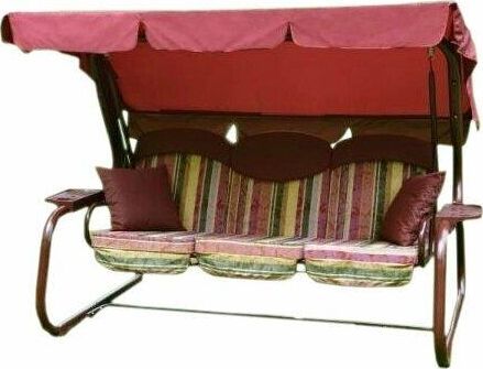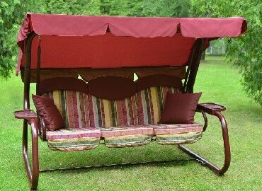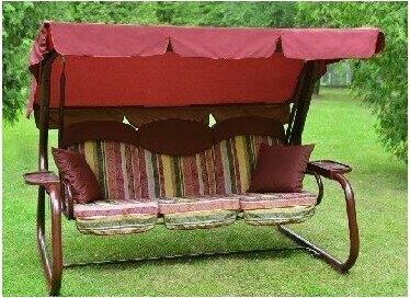 Габаритные размеры изделия (длина х ширина х высота), мм: 2376х1440х1627. Габаритные размеры сиденья,спинки и тента (длина х ширина), мм: размеры сиденья: 1790х540. размеры спинки: 1790х540. размер тканевого тента: 2175х1555. Максимальная нагрузка, кг: 320. Каркас: труба стальная O60х1,5мм; полимерное покрытие; полка - 2 шт. Мягкий элемент: ткань 45% п/э – 55% хлопок, плотность 108-111г/м2, наполнитель мягкого элемента поролон листовой (толщиной 80 мм), наполнитель подголовников – поролон (толщиной 20мм). Подголовники – 3шт; Наполнитель подушек – синтепон. Подушки – 2шт. Тент: ткань с водоотталкивающей отделкой 100% п/э плотность 125-130г/м2. Регулировка спинки: осуществляется звеньями цепи на требуемый угол наклона, с возможностью фиксации в горизонтальном положении; Размеры упаковки: Место 1: 896х120х1660. Место 2: 686х270х2112. Вес изделия: нетто, кг – 57,5. брутто, кг – 62,5.