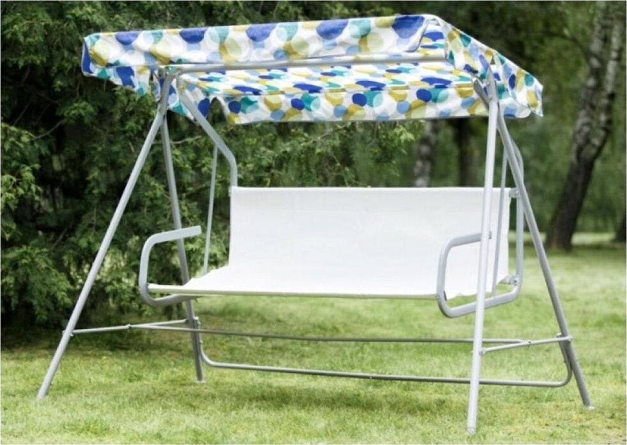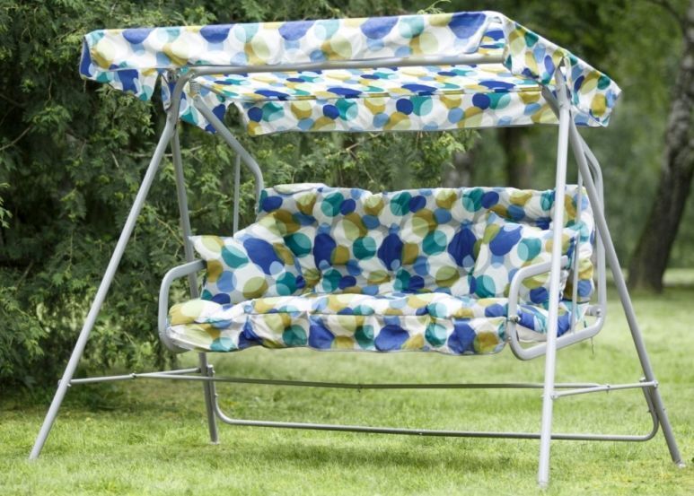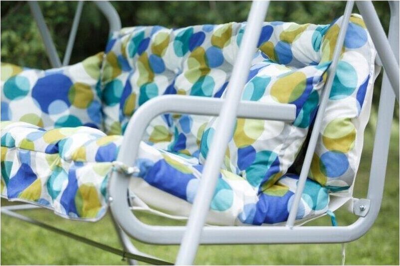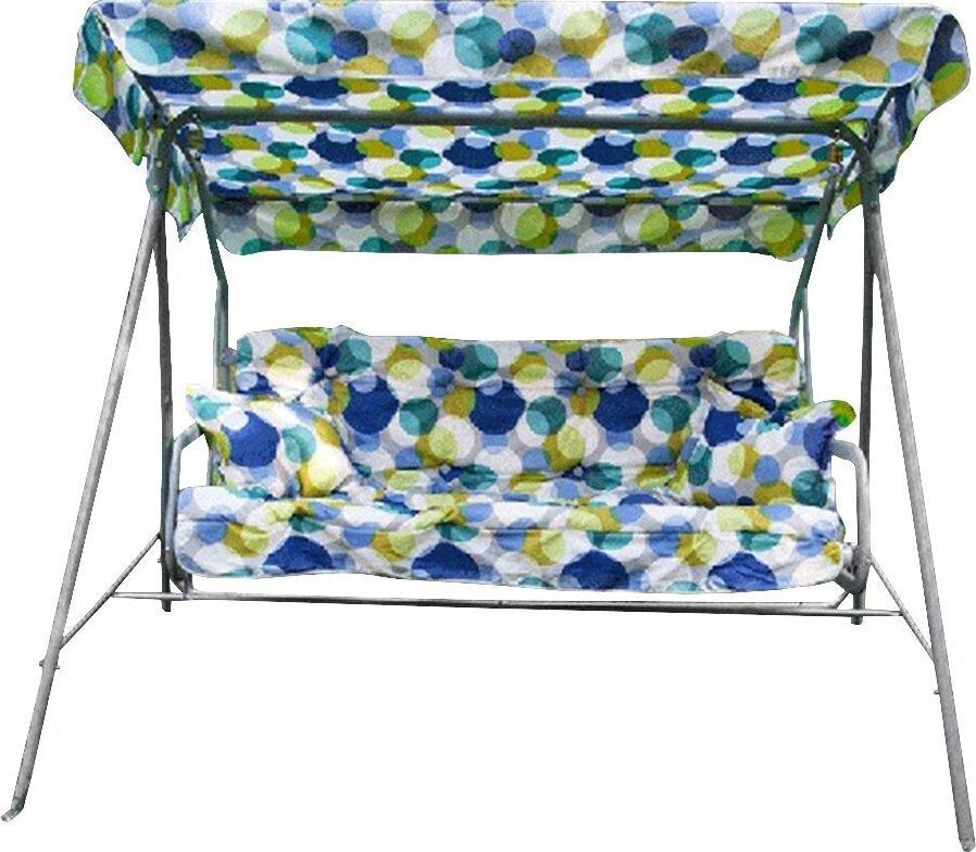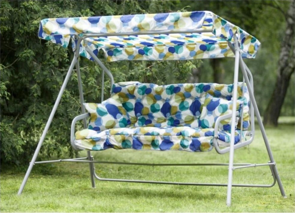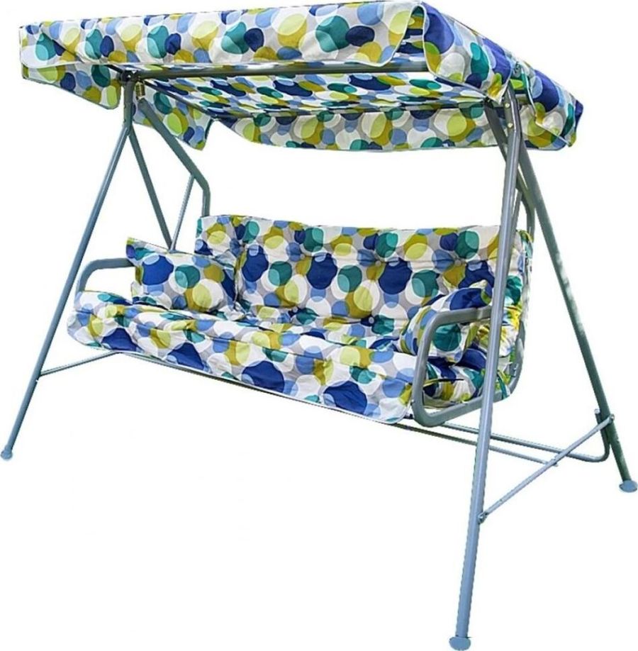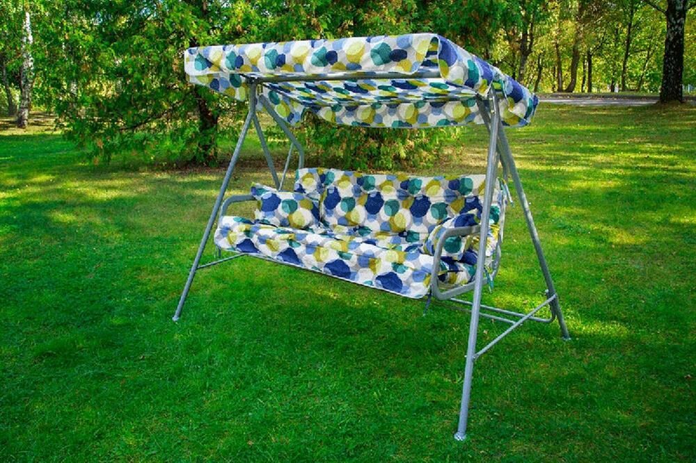 Габаритные размеры изделия (ДхШхВ) 2280х1210х1445 мм, Габаритные размеры сиденья,спинки и тента (длина х ширина) размеры сиденья: 1438х678 мм, спинки: 1438х393 мм, тента: 1608х1020 мм, Каркас: труба стальная Ф 32х1,4мм, полимерное покрытие; Мягкий элемент: ткань 45% п/э 55% хлопок, плотность 108-111г/м2, наполнитель мягкого элемента (крошка поролона), наполнитель подушек (крошка поролона). Подушки 2шт. Основание сидения ткань полипропиленовая. Тент: ткань 45% п/э 55% хлопок, плотность 108-111г/м2, Размеры упаковки: 735х165х1675 мм, Максимальная нагрузка 180 кг, Вес изделия: 28 кг.