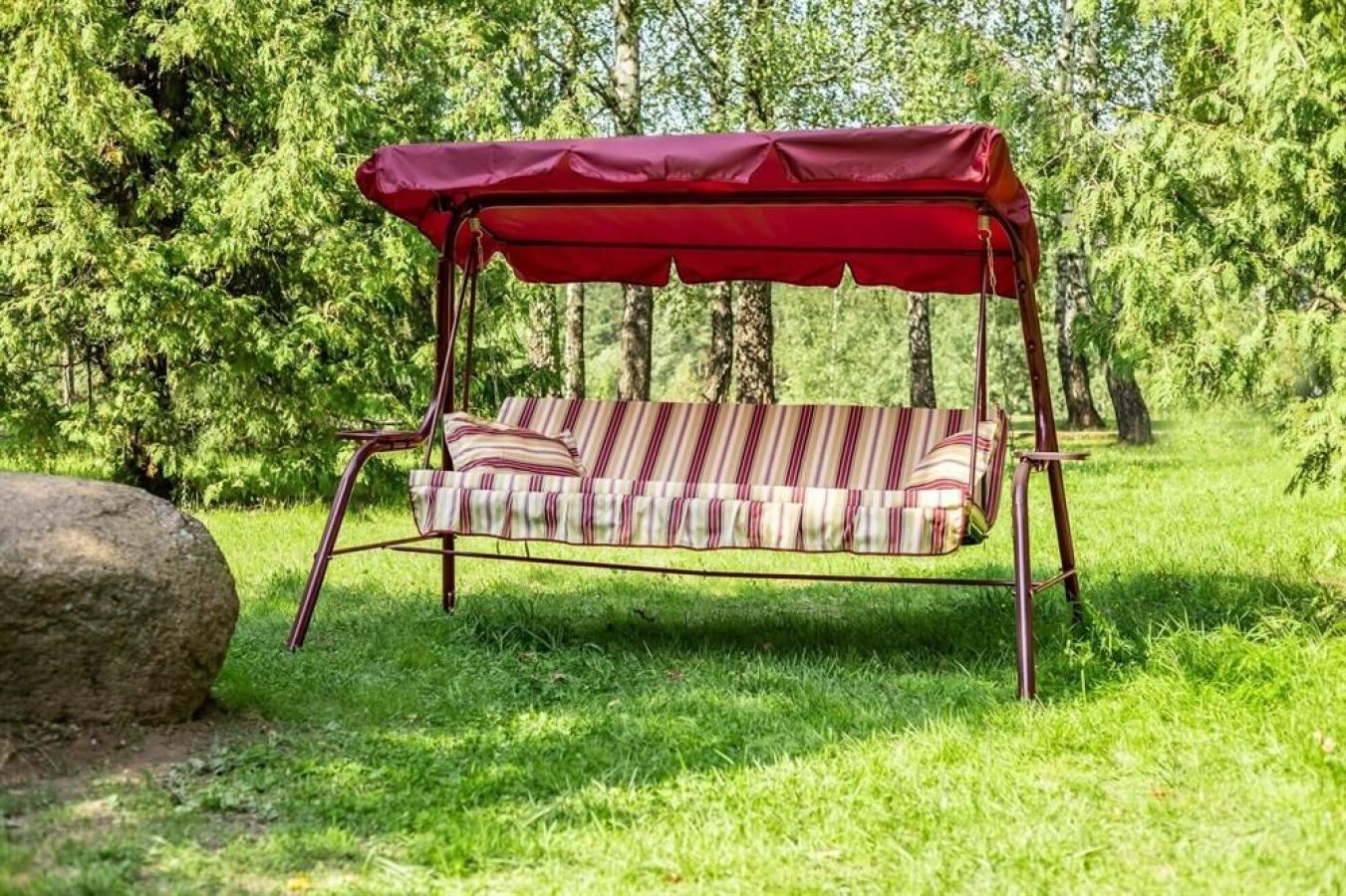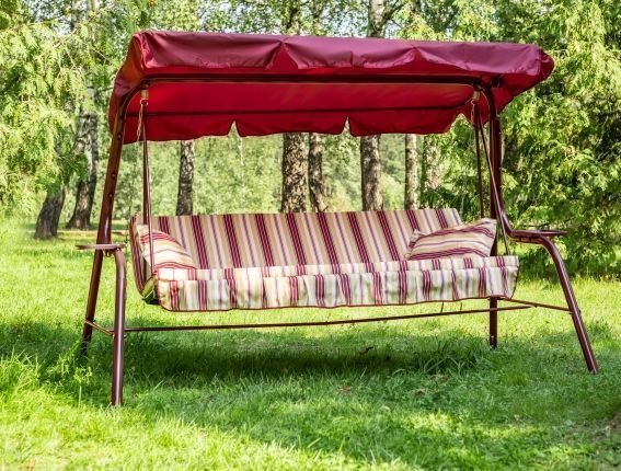 Габаритные размеры изделия (ДхШхВ) 2310х1260х1478 мм, размеры сиденья,спинки и тента (ДхШ) сиденья: 1706х497 мм, спинки: 1706х497 мм, тента: 1840х1020 мм, Каркас: труба стальная Ф 45х1,4мм; полимерное покрытие, Мягкий элемент: ткань 45% п/э – 55% хлопок, плотность 108-111 г/м2 , наполнитель мягкого элемента (листовой поролон 50мм), наполнитель подушек (крошка поролона). Подушки – 2шт. Тент: ткань с водоотталкивающей отделкой 100% п/э плотность 120 г/м2, Регулировка спинки: осуществляется звеньями цепи на требуемый угол наклона. Размеры упаковки: 526х186х1966 мм, Максимальная нагрузка 210 кг, Вес изделия: 34,6 кг.