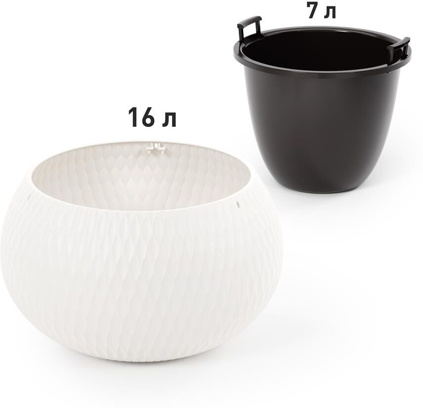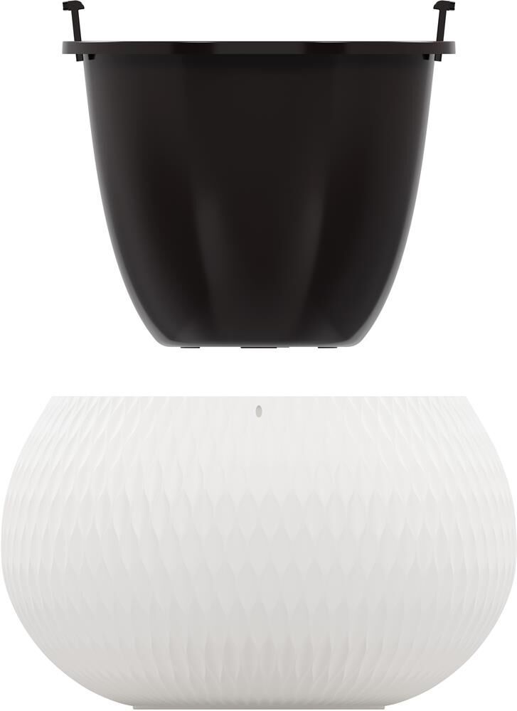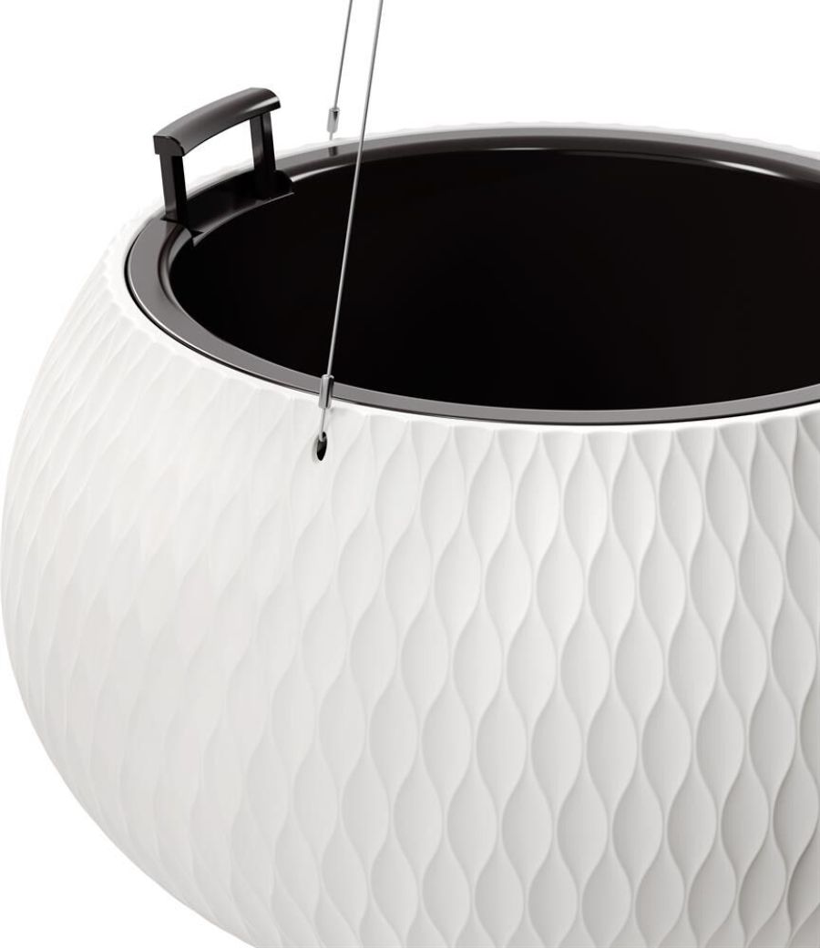 Кашпо «Жемчужина» предназначено для выращивания комнатных и уличных растений. Оно имеет два варианта использования: стоя на полу или подоконнике и в комплектации с подвесным металлическим механизмом, что позволит подвешивать кашпо как дома, так и на садовых участках, расширяя варианты выбора растений от прямых до вьющихся. Кашпо состоит из двух частей. Внутренняя вставка имеет отверстия и предотвращает перелив растений и загнивание корней. Внешняя часть защищает кашпо от протекания, а многогранная поверхность придает визуальную легкость и особенную эстетику изделию. Благодаря необычной сферической форме оно станет украшением любого интерьера.