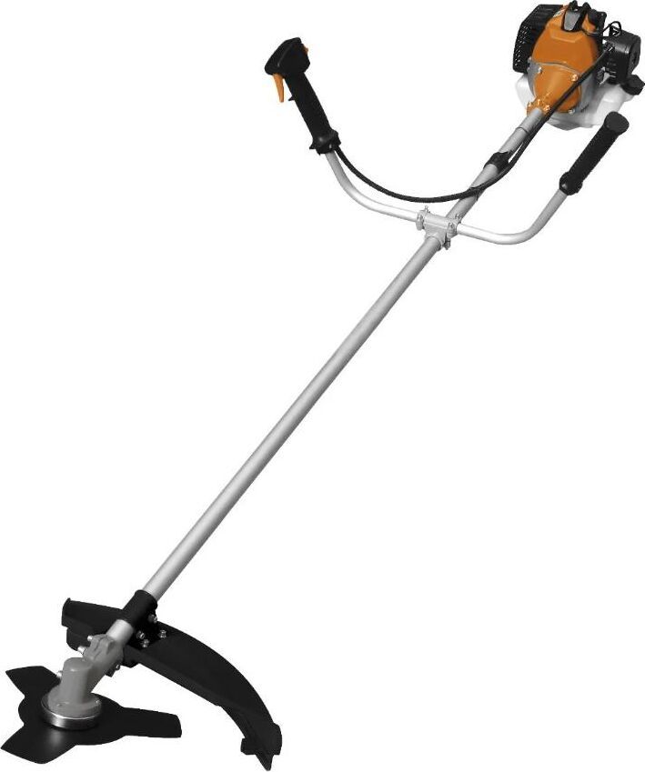Номинальная мощность - 2500Вт. Объем двигателя - 52см³. Праймер - есть. Тип двигателя - двухтактный. Число оборотов - 8000об/мин. Тип ручки - велосипедная. Тип штанги - прямая. Ширина скашивания - 420мм. Приводной вал - жесткий.