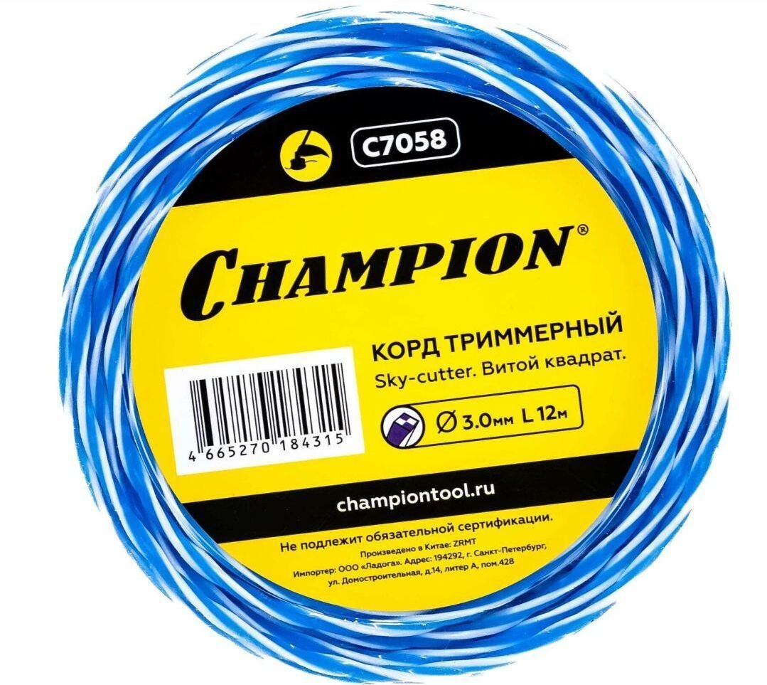 Корд триммерный Champion Sky-Cutter 3 мм х 12 м (витой квадрат) с сечением витой квадрат применяется для кошения растительности мото- и электрокосами. Характеристики Длина, м 12 Толщина корда, мм 3.0 Характеристики Длина лески 12 м Тип леска Сечение лески 3 мм Длина лески 12 м Форма сечения лески витой квадрат (твист)