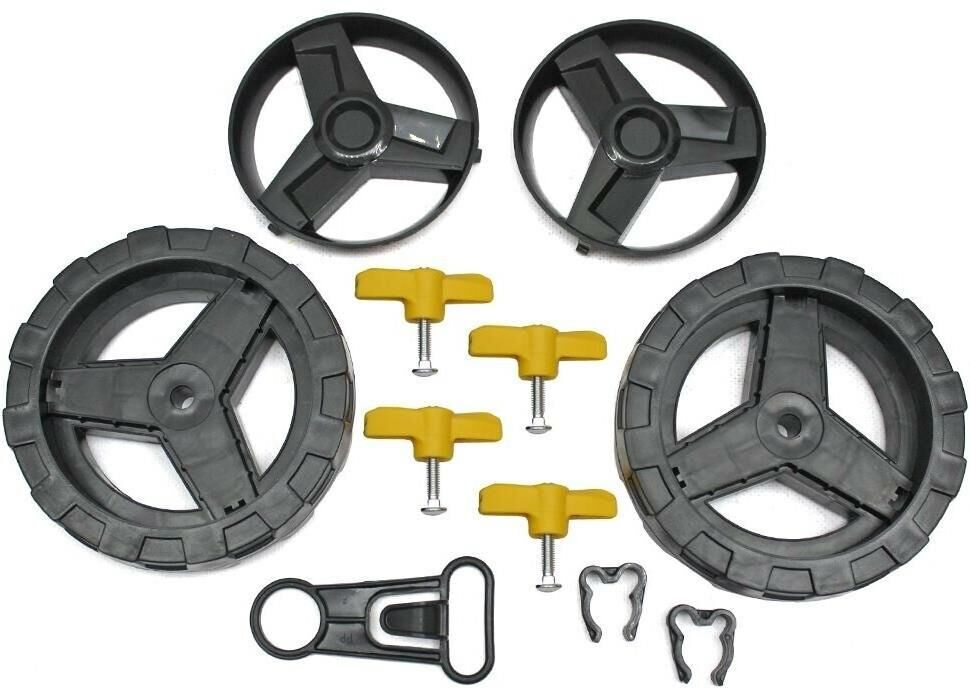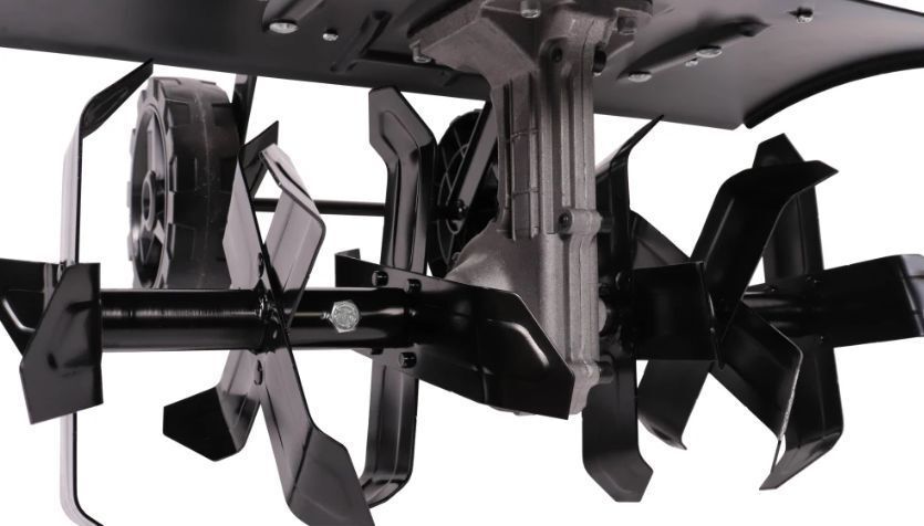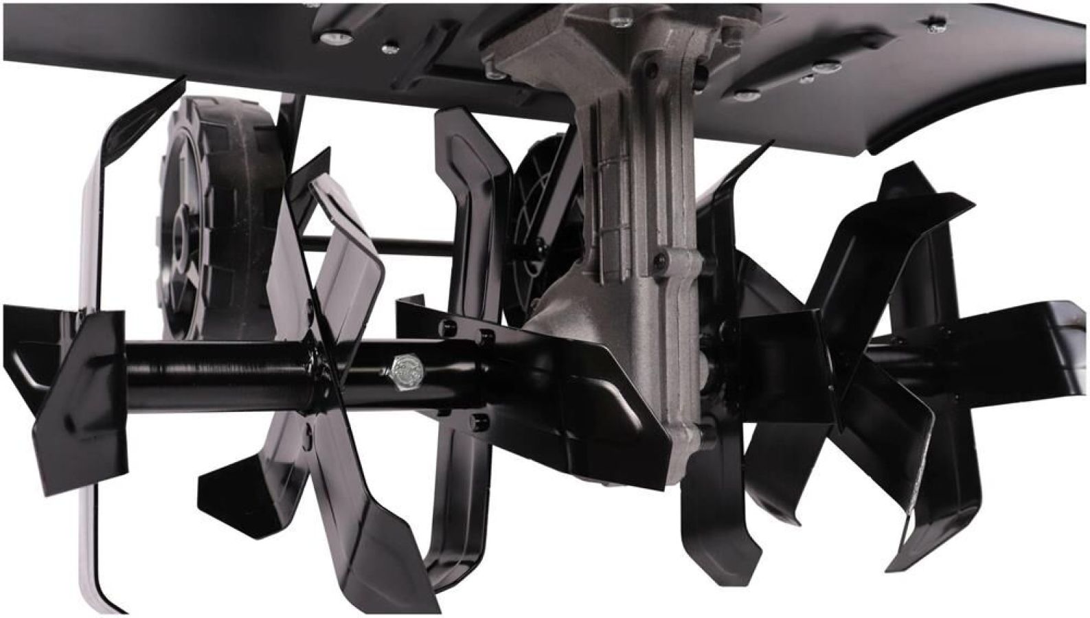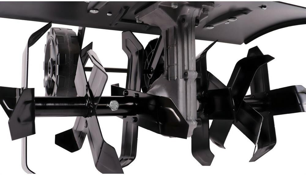 Комплект поставки: рукоятка рабочая нижняя часть - 1 шт, культиватор - 1 шт, руководство по эксплуатации - 1 шт, колесо с декоративным колпаком - 2 комплекта, рукоятка рабочая верхняя часть - 1 шт, держатель кабеля удлинителя - 1 шт, фиксатор кабеля включения - 2 шт, гайка
