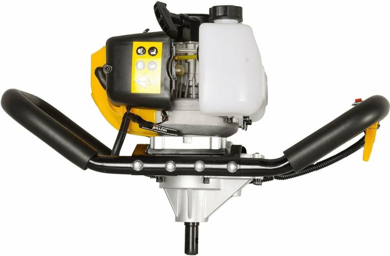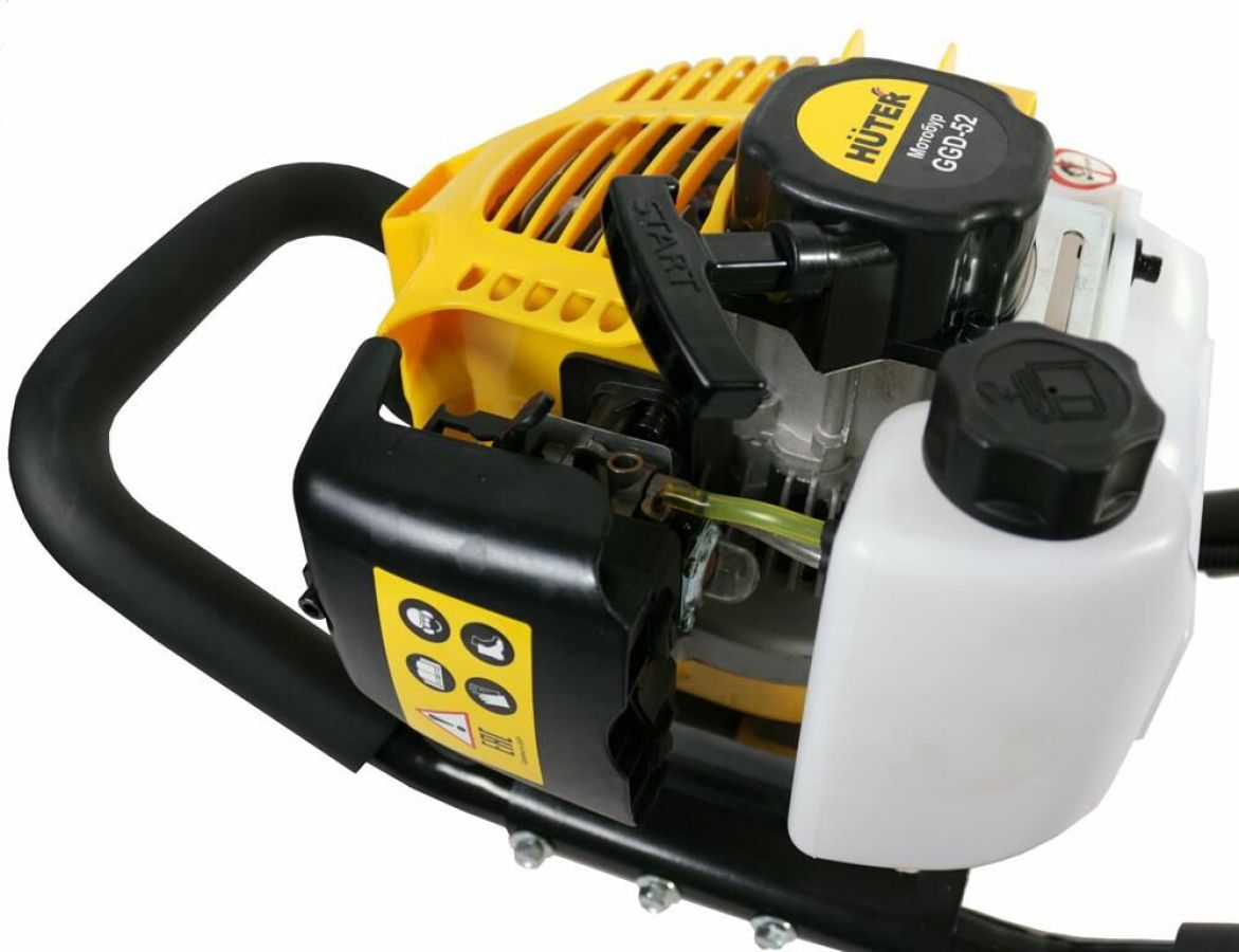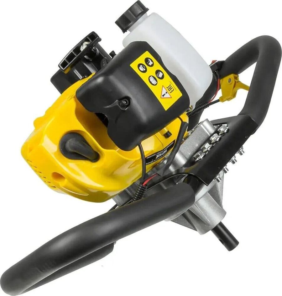 Вид топлива Бензин АИ-92 + Масло. Тип двигателя Одноцилиндровый, двухтактный, безиновый двигатель с воздушным охлаждением. Максимальные обороты двигателя, об/мин 8700±500. Система зажигания Электронное зажигание TCI. Тип карбюратора Диафрагменный. Топливная смесь Смесь бензина (АИ 92) и масла для двухтактных двигателей в соотношении 40: 1. Допустимые типы шнека Металлический для грунта или льда. Комплектация Мотобур - 1 шт. Ёмкость для топливной смеси - 1 шт. Набор инструментов - 1 шт. Инструкция - 1 шт. Мощность, Вт 2000. Объём, см3 52. Объем топливного бака, мл 1.25.