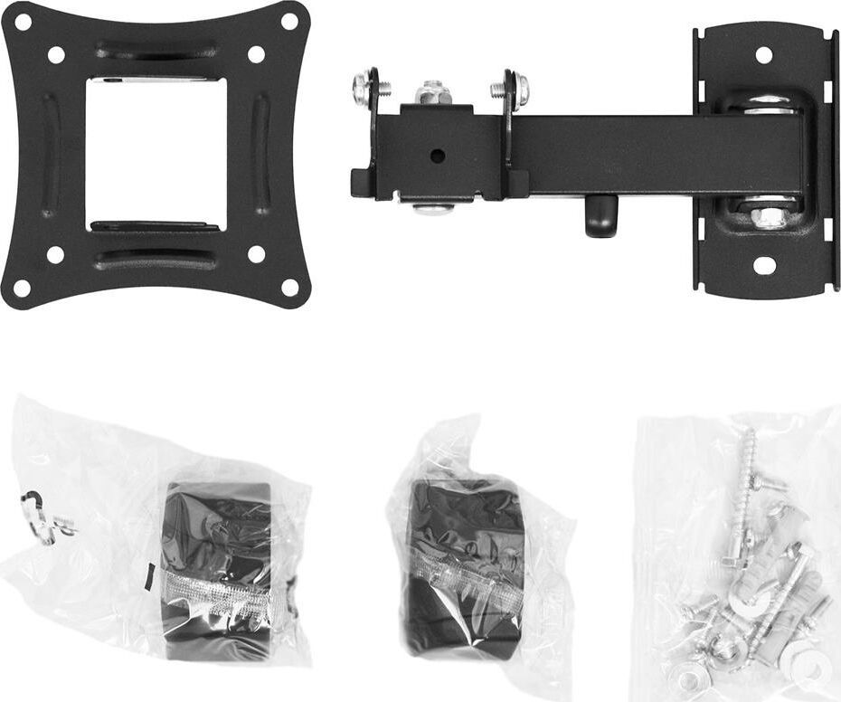 Тип кронштейна Наклонно-поворотный. Крепежные отверстия (VESA) 75x75 - 100x100. Мин. диагональ экрана (дюймы) 15. Макс. Диагональ экрана (дюймы) 30. Максимальная нагрузка, (кг.) 15. Угол наклона (°) +5°/-15. Угол повотора (°) 360. Расстояние от стены (мм.) 59-183. Цвет кронштейна Черный. Комплектация Кронштейн, набор крепежа, инструкция.