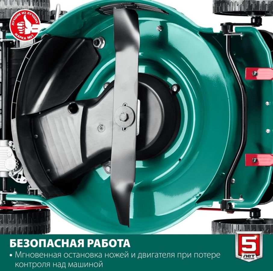 Мощность, л.с. 4.5. Объем двигателя, см3 150. Частота вращения шпинделя, об/мин 3000. Емкость топливного бака, мл 1000. Объем масляного бака, мл 450. Ширина скашивания, мм 460. Высота скашивания max, мм 75. Высота скашивания min, мм 25. Количество ступеней регулировки 7. Регулировка высоты центральная. Материал корпуса сталь. Тип рукоятки складная. Объем травосборника, л 60. Мульчирование есть. Самоходная нет. Регулировка скорости да. Автозапуск нет. Норма расхода топлива, л/маш.-час 1.0.