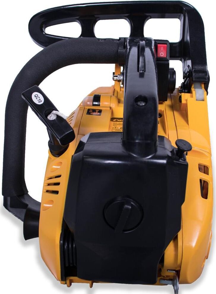Длина шины, (дюйм/см) 10/25 Количество звеньев цепи, (шт) 40 Максимальные обороты без нагрузки, (об/мин) 12000 Обороты холостого хода, (об/мин) 3000 Объем масляного бака, (л) 0,160 Объем топливного бака, (л) 0,230 Удельный расход топлива, не более, г/кВт час 420 Уровень звукового давления, (дБ) 105 Шаг пильной цепи, (дюймы) 3/8 Ширина паза пильной шины, (мм) 1,3