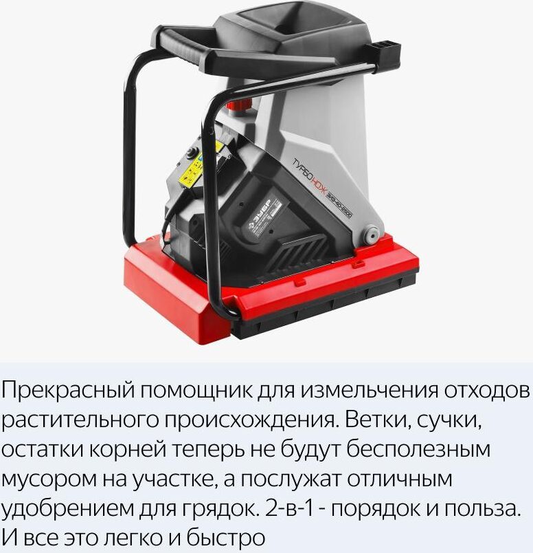 Измельчитель садовый 2500 Вт, режущий нож, 4050 об/мин. Прекрасный помощник для измельчения отходов растительного происхождения. Листья, сучки, остатки корней, скошенная трава теперь не будут бесполезным мусором на участке, а послужат отличным удобрением для грядок. 2-в-1 - порядок и польза. И все это легко и быстро