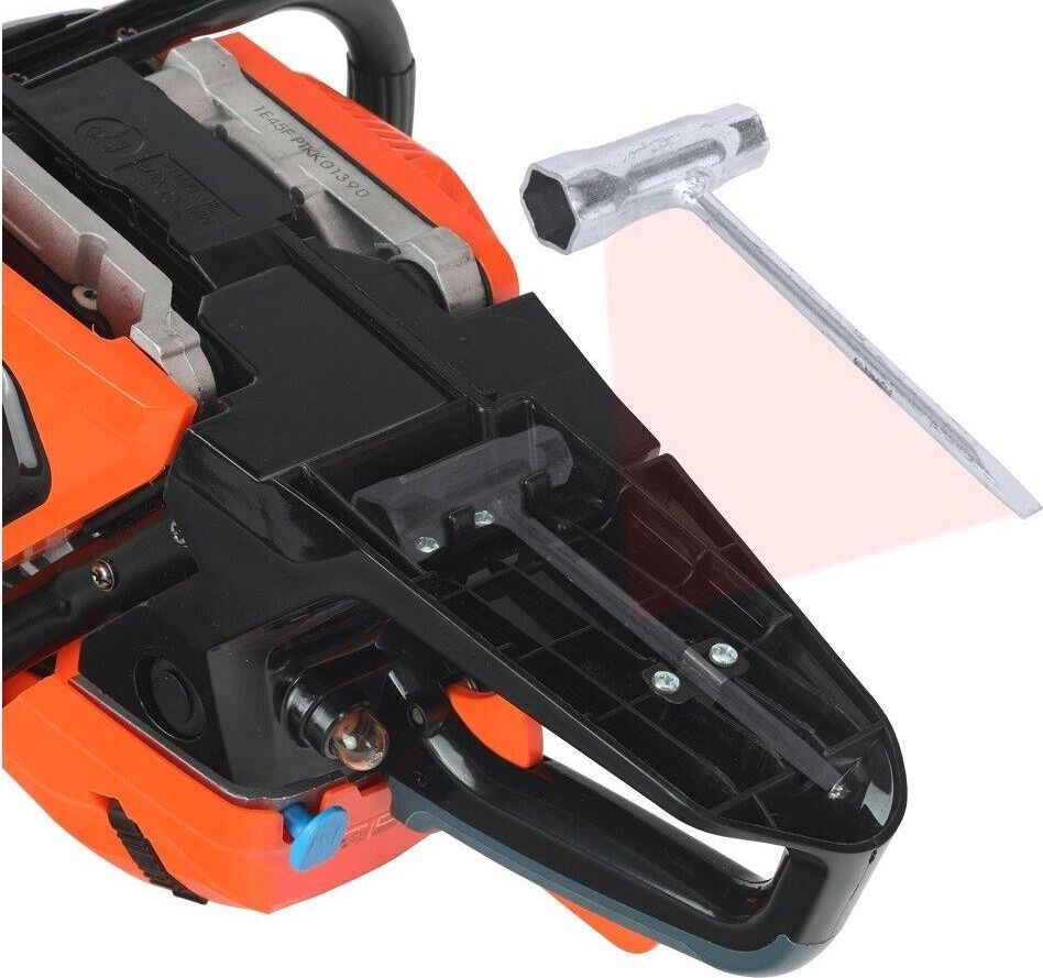Комплект поставки: пила цепная бензиновая, шина, кожух шины, цепь, упор с комплектом крепежа 1 шт, набор ключей (опционально) 1 шт, емкость для приготовления топливной смеси, инструкция по эксплуатации , Модификация (код производителя): 220 10 5550 , Емкость топливного бака: 0.55 л , Емкость масляного бака: 0.26 л , Функции и возможности: тормоз цепи, антивибрация, плавный пуск