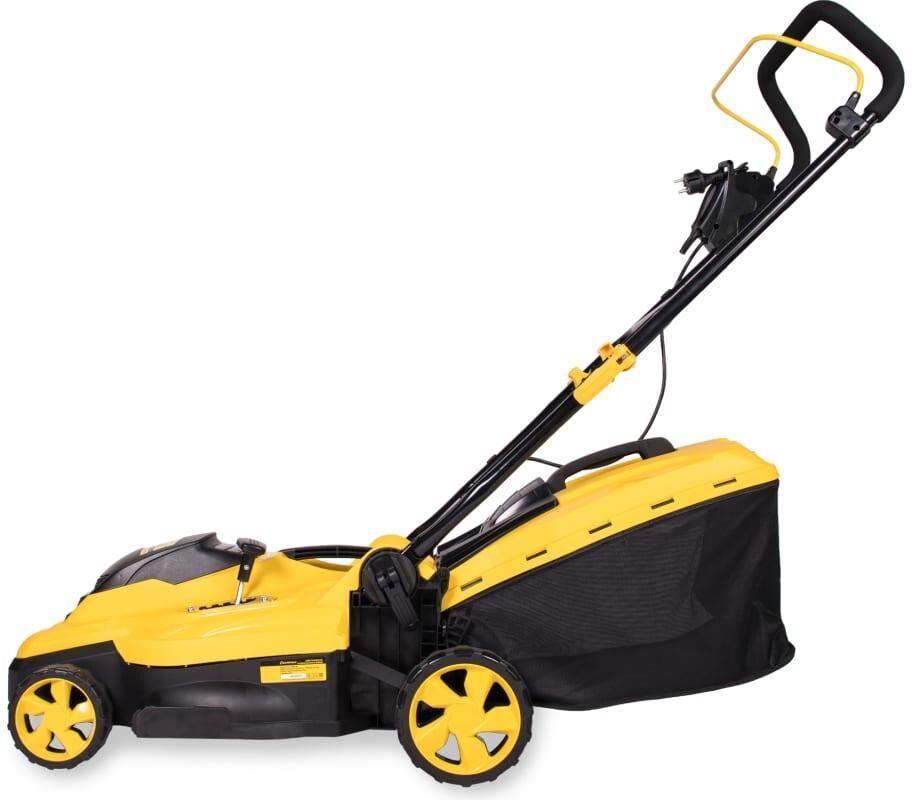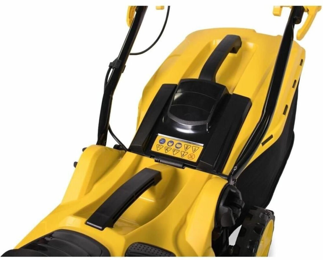Мощность двигателя, (Вт) 1600. Напряжение сети (В, Гц) 230/50. Вес c травосборником, (кг) 11,5. Ширина кошения, (мм) 360. Высота кошения, (мм) 20-70. Тип/объем травосборника, (л) пластик+ткань/45. Регулировка высоты кошения/количество положений однорычажная/5. Уровень мощности звука, (дБ) 91. Уровень звукового давления, (дБ) 78. Уровень вибрации на рукоятке, (м/с2) 2,9.