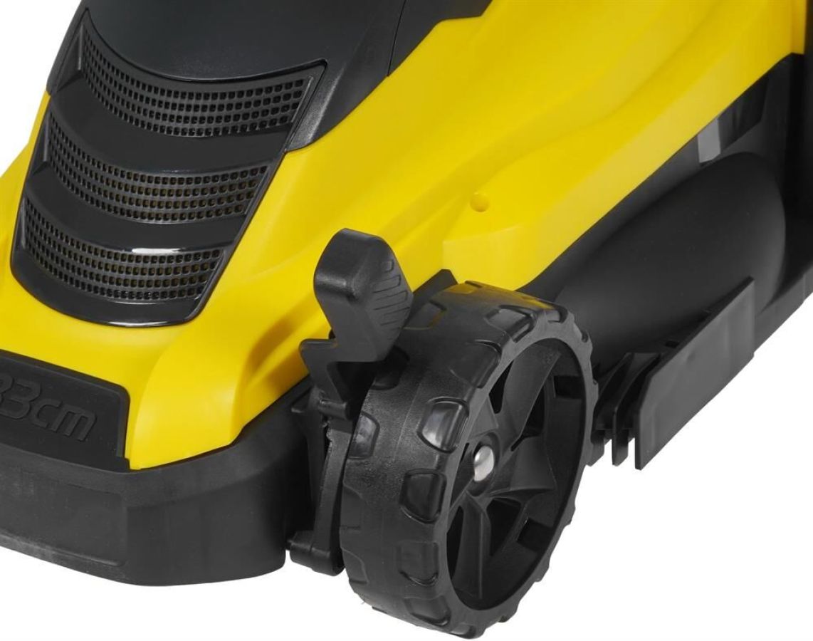 Мощность двигателя, (Вт) 1300. Напряжение сети (В, Гц) 230/50. Вес c травосборником, (кг) 8,8. Ширина кошения, (мм) 330. Высота кошения, (мм) 25-65. Тип/объем травосборника, (л) пластик/35. Регулировка высоты кошения/количество положений однорычажная/5. Уровень мощности звука, (дБ) 89. Уровень звукового давления, (дБ) 76,8. Уровень вибрации на рукоятке, (м/с2) 3,47.