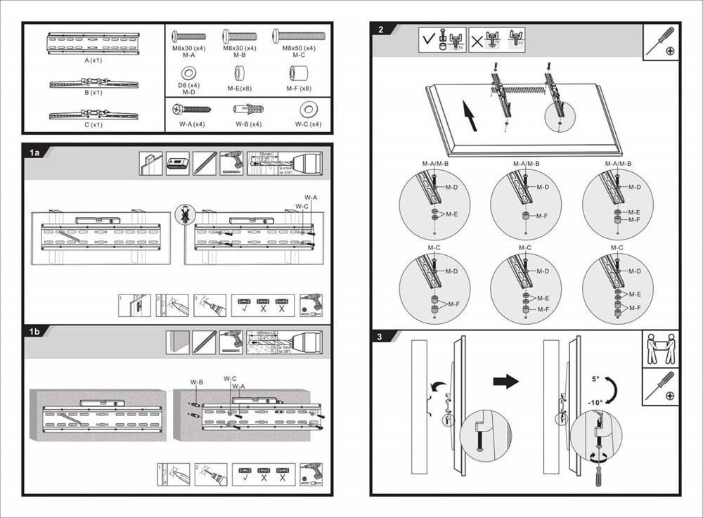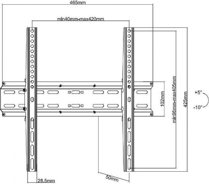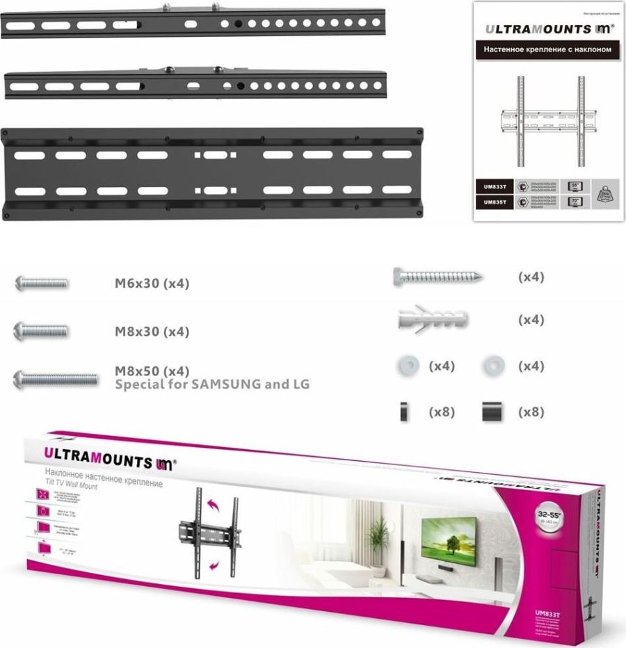 Материал: холоднокатаная сталь. Протестировано весом в 3 раза больше. Можно перемещать вправо-влево. Угол наклона свободно регулируется. Легко устанавливается. Диагональ экрана: 32"-55". VESA: 200x200, 300x200, 300x300, 400x200, 400x300, 400x400. Нагрузка: до 35 кг.