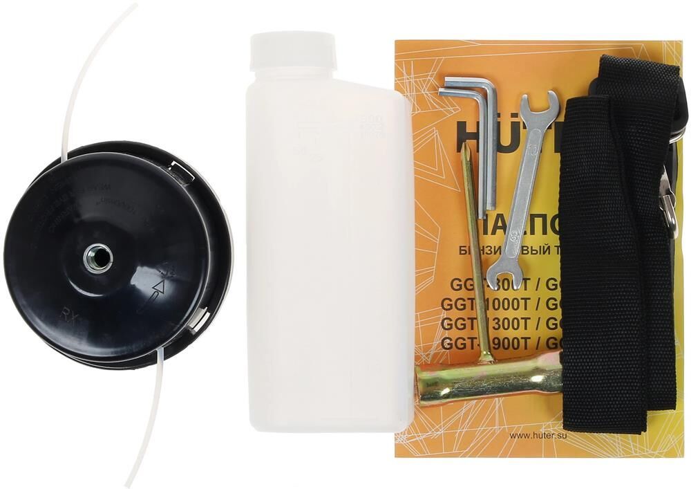 Бензиновый триммер Huter GGT-1900T – это производительный инструмент для удаления травы. Используется для выполнения работ вручную. С помощью триммера можно легко скосить даже длинную траву, что идеально подходит для дачи или небольшого загородного участка. Бензиновый триммер – это удобное и производительное оборудование, с помощью которого можно существенно упростить процессу уборки травы за счет наличия бензинового мотора. Мощность: 1900 Вт. Тип двигателя: бензиновый. Число тактов: 2. Способ охлаждения: воздушный. Объем двигателя: 51,7 см3. Мощность двигателя: 2,58 л.с. Тип топлива: бензин АИ-92. Тип штанги: неразъемная. Система гашения вибрации: есть. Тип режущего инструмента: леска / нож. Ширина скашивания леской: 460 мм. Ширина скашивания ножом: 255 мм. Резьба триммерной катушки: М10х1,25 LH.