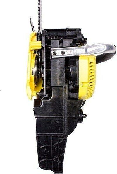 Мощность двигателя, (кВт/л.с.) 1,7/2,31 Объем двигателя, (см3) 39,6 Вес, без шины и цепи с пустыми баками, (кг) 4,3 Длина шины, (дюйм/см) 16/40 Количество звеньев цепи, (шт) 56 Максимальные обороты без нагрузки, (об/мин) 12 500 Максимальный расход топлива, (г/кВт ч)/(л/ч) 680 Обороты холостого хода, (об/мин) 3 000 Объем масляного бака, (л) 0,24 Объем топливного бака, (л) 0,41 Уровень вибрации передней/задней рукоятки, (м/с2) 7,63 Уровень мощности звука, (дБ) 113,08 Шаг пильной цепи, (дюймы) 3/8 Ширина паза пильной шины, (мм) 1,3