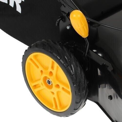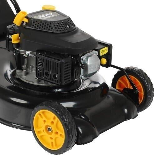 Двигатель 4-х тактный, одноцилиндровый. Мощность, л,с. 4. Скорость оборотов, холостого хода, об/мин 2800-3200. Объем топливного бака, л 1. Ширина среза, мм 460. Высота среза, мм 25 — 75. Регулировка высоты среза центральная, 7 уровней. Объем травосборника, л 60. Материал травосборника Ткань. Вес в упаковке 34.2 кг. Габариты, см 49 х 54 х 82. Мощность, Вт 3000. Вес без упаковки, кг 29. Тип режущей системы Роторная. Класс товара Профессиональный. Тип двигателя Бензиновый.