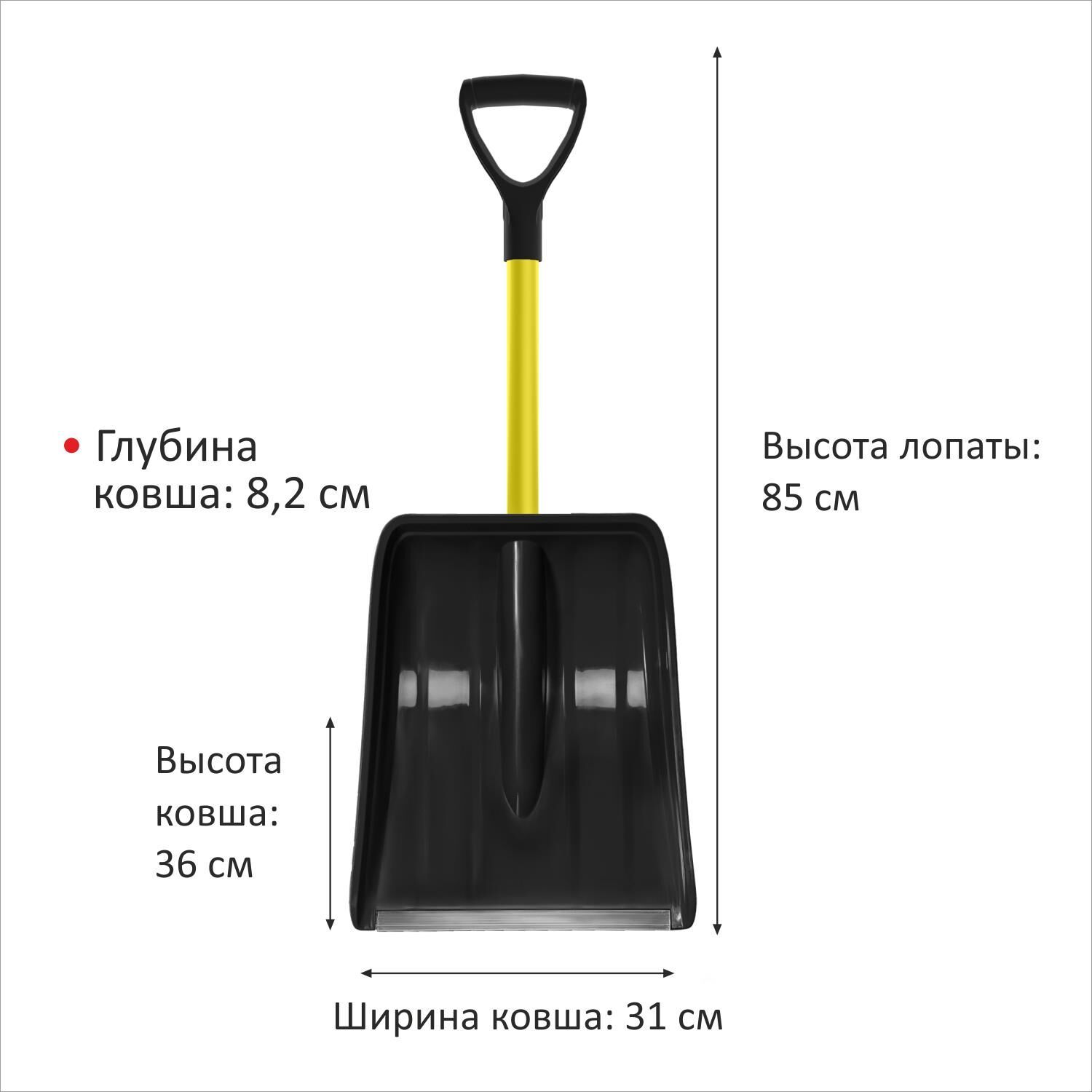 Благодаря оптимальной длине (85 см) и небольшому весу (650 грамм) автомобильная лопата удобна в использовании. Эргономичная V-образная рукоять обеспечивает комфортный хват и удобство хранения на крючке. Неломающийся ковш из первичного полипропилена увеличенной глубины Облегченный черенок из материала файбергласс Эргономичная V-образная рукоять обеспечивает удобный хват Алюминиевый скребок Длинна лопаты: 85 см Вес лопаты: 0,65 кг Габариты ковша: 31х36х8,2 см Материал ковша: полипропилен/алюминий Материал черенка: файбергласс Тип рукояти: V-образный Материал рукояти: полипропилен Страна производитель: Россия