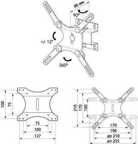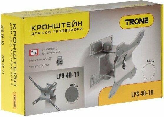 Наклонно-поворотный. Для LCD и LED TV от 15” до 32” наклон+/- 12*, поворот 90*, стандарт VESA: 75х75, 100x100, 127х100, 100х200, 200х200, нагрузка до 25 кг., Материал: сталь .Цвет: серебро металлик.