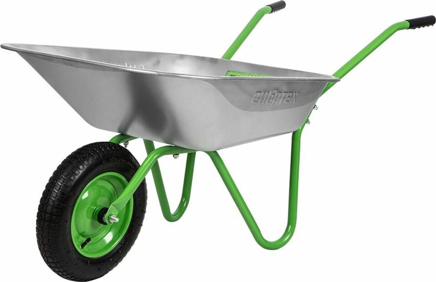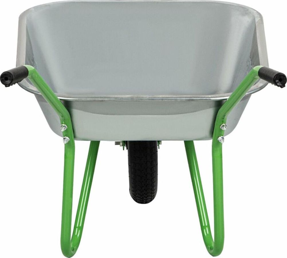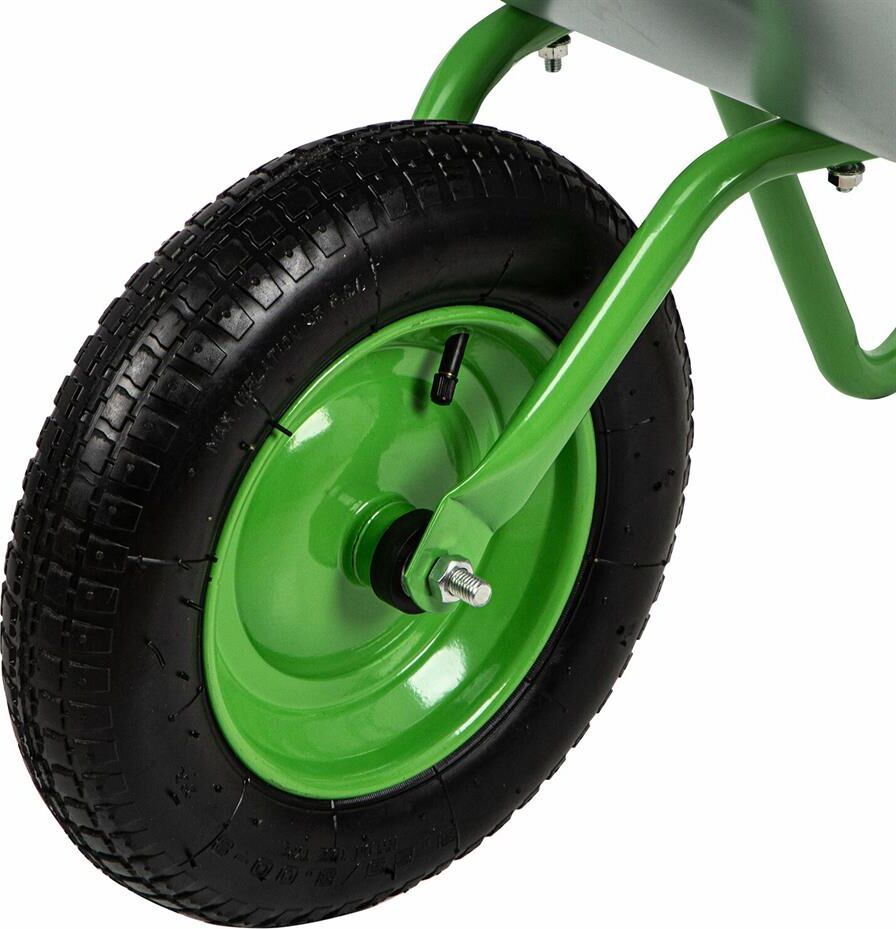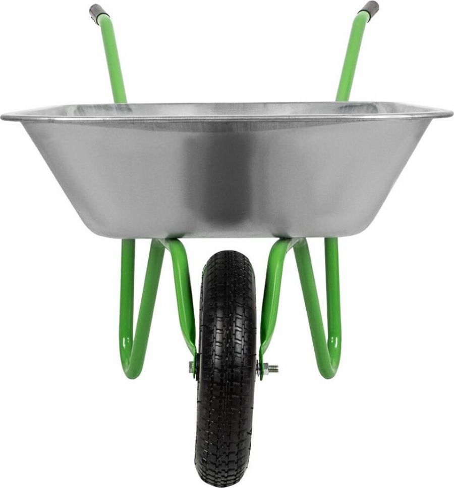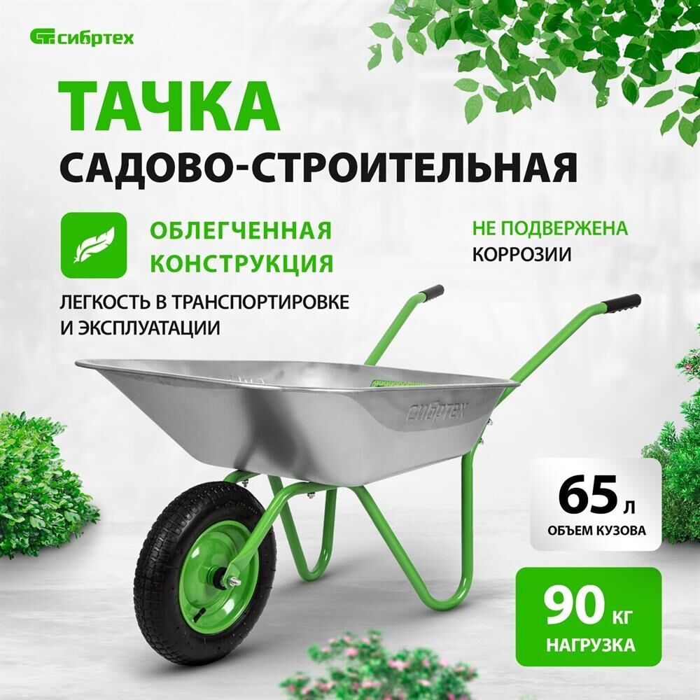Максимальная нагрузка 90 кг. Объем корыта 65 л. Толщина корыта 0,5 мм. Толщина рамы 1,0 мм. Материал корыта сталь оцинкованная. Материал рамы сталь окрашеная. Диаметр рамы 25 мм. Количество колес 1. Тип колеса пневматическое. Диаметр колеса 345 мм.