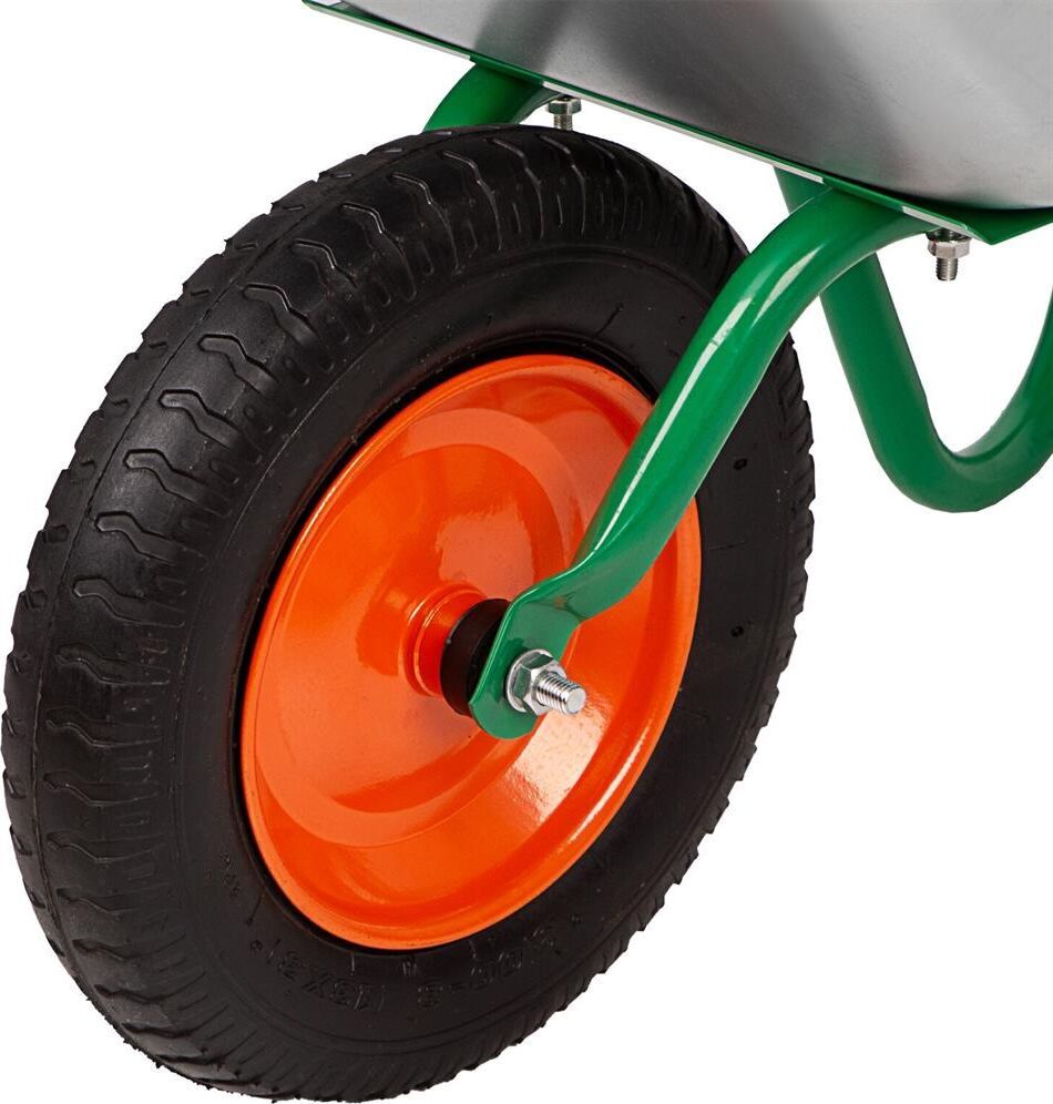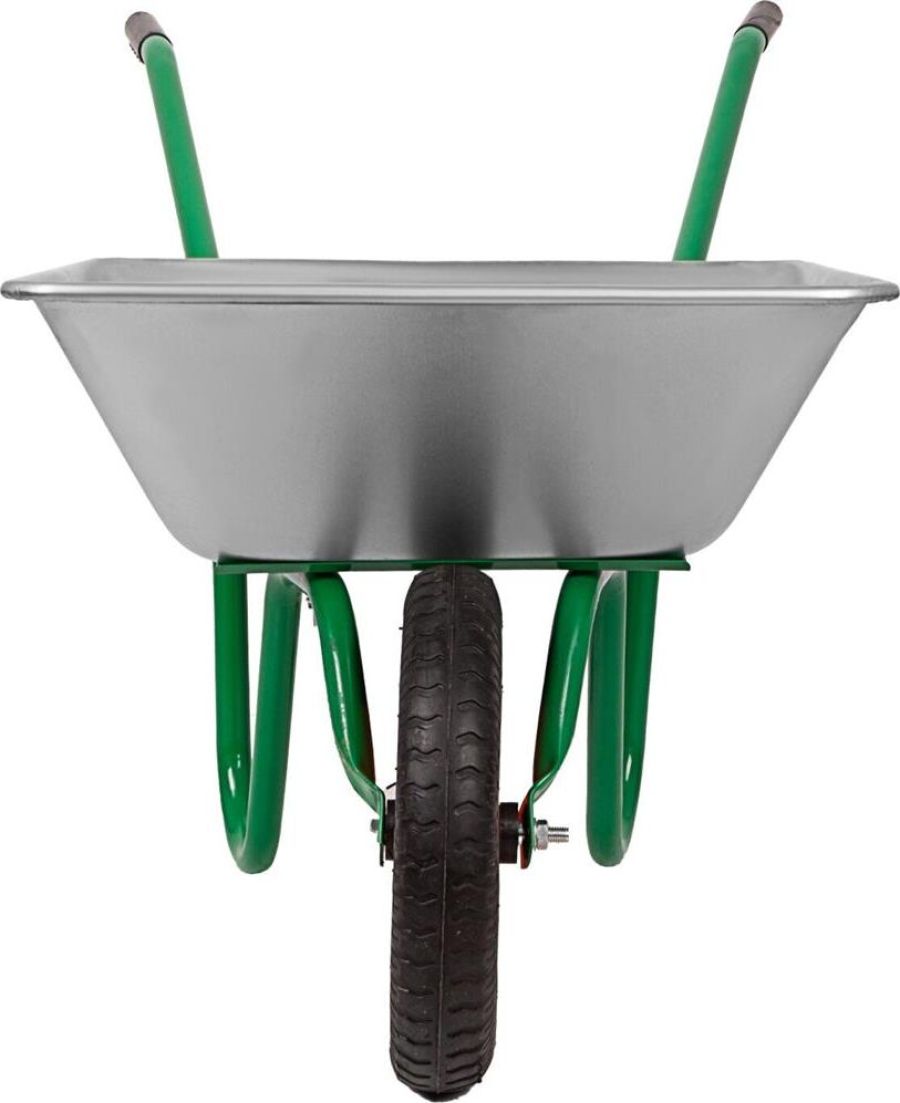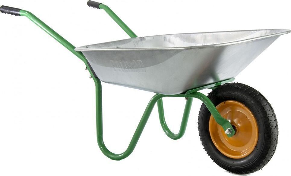 Тип садовая. Длина 1.28 м. Ширина 0.59 м. Высота 0.61 м. Максимальная нагрузка 100 кг. Объем корыта 65 л. Материал корыта сталь оцинкованная. Толщина корыта 0,6 мм. Материал рамы сталь окрашеная. Толщина рамы 1,0 мм. Диаметр рамы 28 мм. Тип колеса пневматическое. Маркировка колеса 3.00-8.