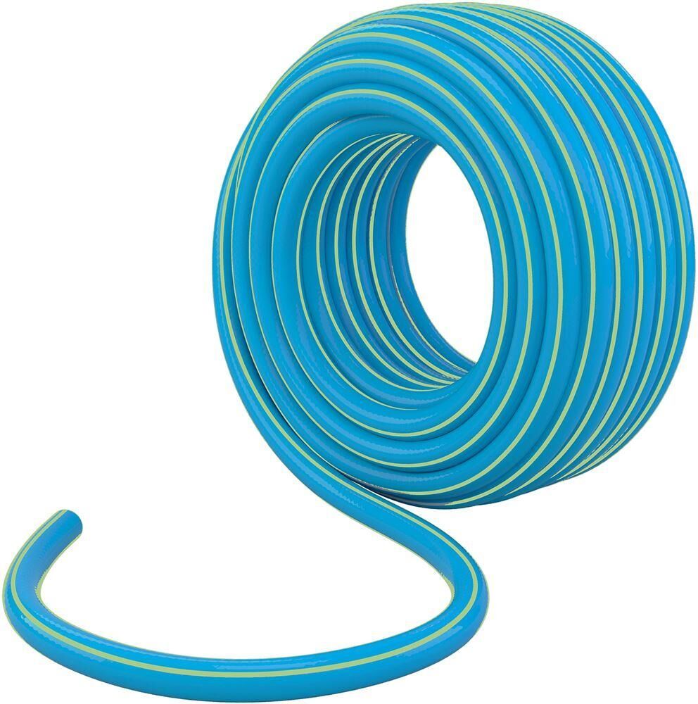 Шланг поливочный армированный 3-слойный ТЭП (термоэластопласт) Palisad 67106 диаметром 1/2 и длиной 20 м, лазурный, пригодится владельцам дачных участков и сотрудникам коммунальных служб для создания системы орошения. Позволяет без особых усилий поддерживать водный баланс почвы. Длины 15 м достаточно для орошения небольших участков.ПреимуществаПрочность и долговечность — шланг из ТЭП, армированный суперпрочной полиэстерной нитью плотностью 93 ТЭКС, устойчив к повышенным нагрузкам на изгиб, скручиваниям и обладает высокой морозоустойчивостью.Высокий ресурс — армирующая нить с инновационным плетением обеспечивает равномерное распределение нагрузки.Всепогодность — температурный диапазон эксплуатации от -30 до +70°С.Устойчивость к УФ-лучам и механическим воздействиям — на поверхность шланга нанесено защитное покрытие.Высокие эксплуатационные характеристики — толщина стенок составляет 2,5 мм, поэтому шланг выдерживает разрывные нагрузки до 6 бар.
