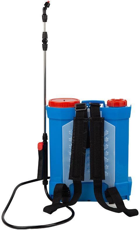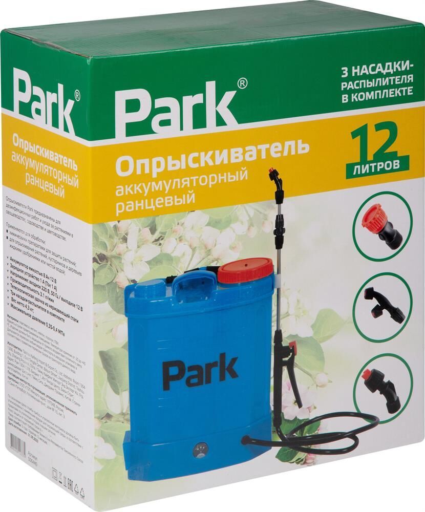 Тип опрыскивателя - ранцевый Тип аккумулятора свинцово-кислотный Индикатор заряда (красный во время зарядки, зеленый или голубой по окончании зарядки) Удобное расположение на спине благодаря регулируемым ремешкам (ремешки с широкой частью и прослойкой из пенки для распределения нагрузки при работе с прибором) Тип аккумулятора свинцово-кислотный Удочка телескопическая из нержавеющей стали и пластика размер 53-100см Работа после полной зарядки 3-3,5 часа Зарядное устройство (в комплекте): вход - 100-240 В, напряжение , 50-60 Гц; выход - постоянный ток 12 В, 1А Аккумуляторная батарея: 12 В, 8 Аh в полном комплекте, готовая к эксплуатации Максимальное давление жидкости: 0.4 Mpa Распыляемые жидкости: вода, гербициды, пестициды, чистящие средства Ёмкость бака:12л В комплекте: 3 насадки – распылителя Длина шланга: 1,2 м Имеет регулятор мощности насоса и вольтметр, который позволяет постоянно отслеживать уровень заряда батареи Производительность: 3,1 л/мин