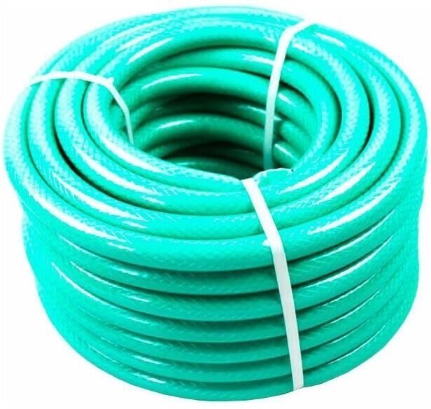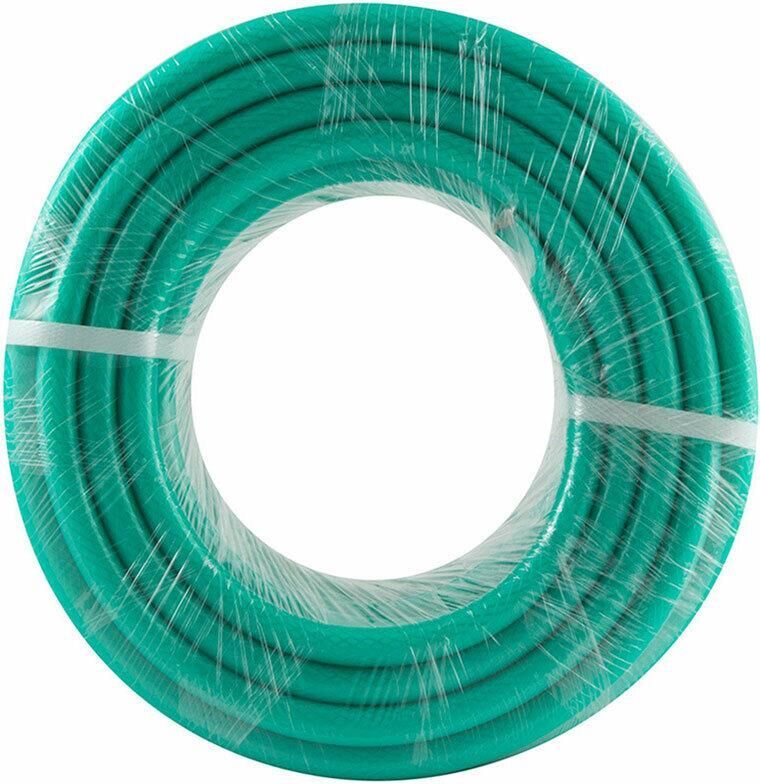 Материал: ПВХ, синтетическая нить Размер: длина 50 м, диаметр 1/2" Индивидуальная упаковка: термоусадка с цветным стикером Трехслойный армированный поливочный шланг из ПВХ Рабочее давление до 6 атм. Верхний слой может быть выполнен в 3-х цветовых решениях: прозрачный синий, прозрачный салатовый и прозрачный желтый. Нижний слой - белый, что является изюминкой данного шланга. Толщина стенки, мм 1,4 вес бухты 4,3 кг материал — ПВХ, температурный диапазон - от 0 до + 50 град.