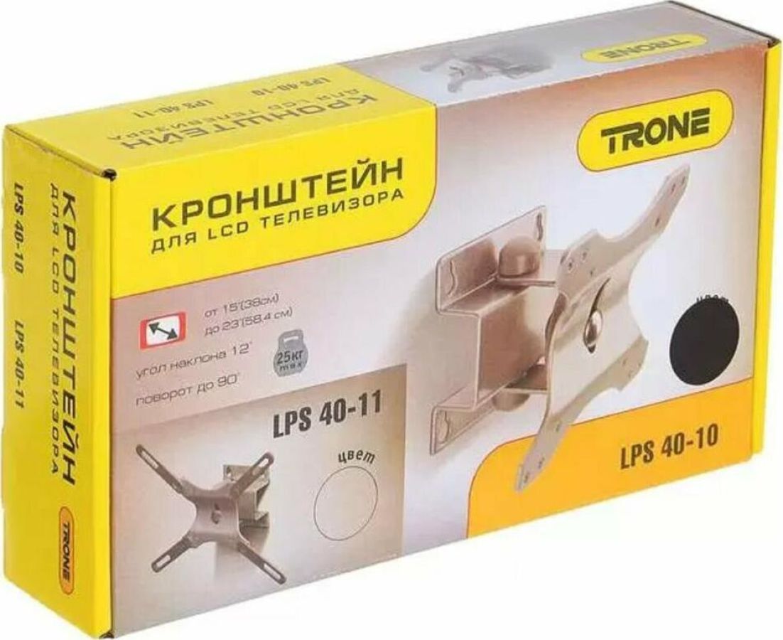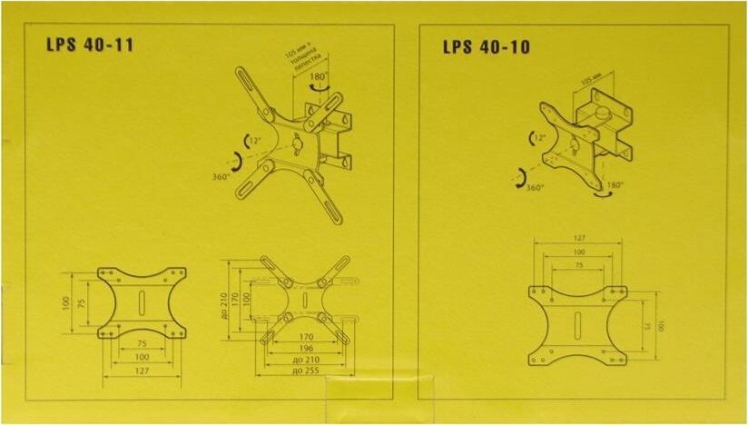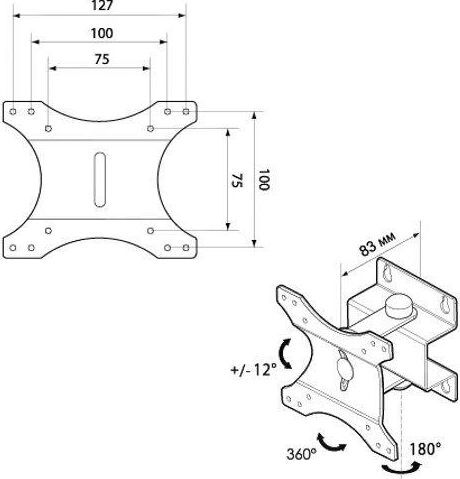 Наклонно-поворотный.Для ЖК монитора от 15” до 23” габаритные размеры (Ш*Г*В) 265*28*123 мм VESA: 75х75, 100x100, 127х100. Нагрузка до 20 кг. Материал: сталь. Цвет: серебристый.