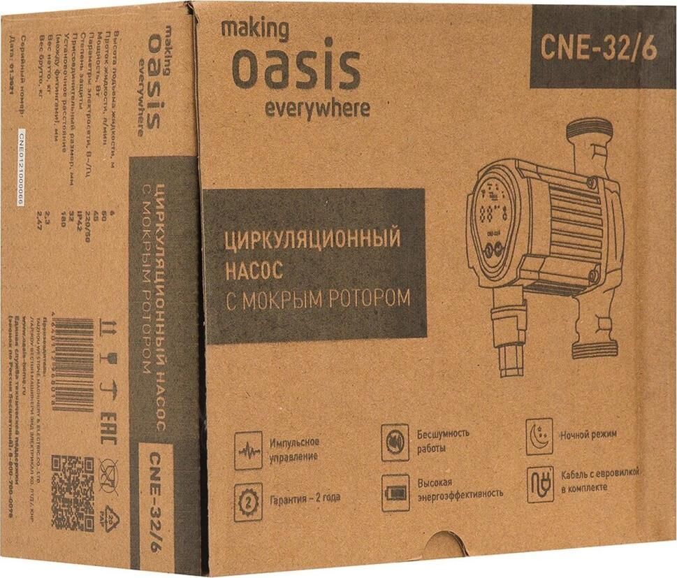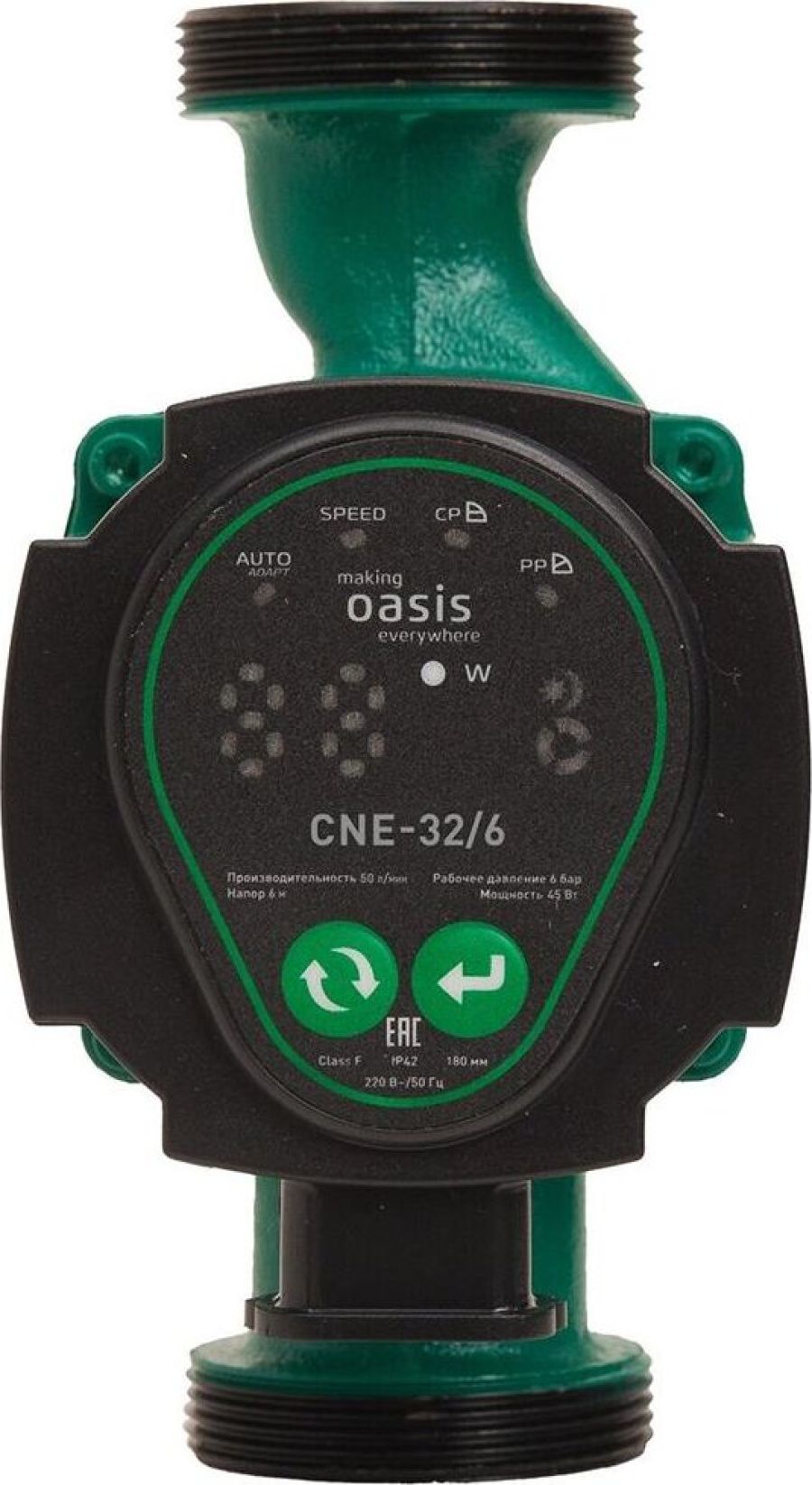 МодельCE-32/6. Высота подъема жидкости, м 6. Проток жидкости, л/мин 50. Мощность, Вт 45. Параметры электросети, В~/Гц 220/50. Степень защиты IP42. Присоединительный размер, мм 32. Установочное расстояние (между фитингами), мм 180. Вес нетто, кг 2,3.