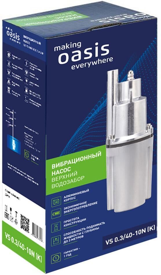 Насос вибрационный, верхний забор воды, мощность 180 Вт, максимальный напор 40 метров, максимальный расход 18 л/мин, длина кабеля 10 метров