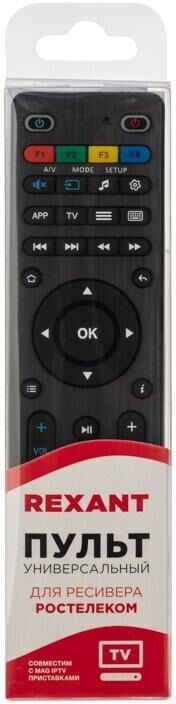 Универсальный пульт дистанционного управления REXANT для большинства современных моделей ресиверов Ростелеком, отличается простотой в использовании и высоким качеством. Пульт поддерживает все необходимые функции, обеспечивающие максимально полное и удобное управление ресивером. Имеет низкое энергопотребление, удобен и прост в настройке. Совместим с MAG IPTV приставками данных моделей: MAG-245 HD MAG-250 HD MAG-254 HD MAG-255 HD MAG-260 HD MAG-270 HD MAG-275 HD MAG-350 HD MAG-351 HD MAG-352 HD Размер пульта: 17.5х4.5х2.0 см Тип питания: батарейки 2 х ААА (в комплект не входят)