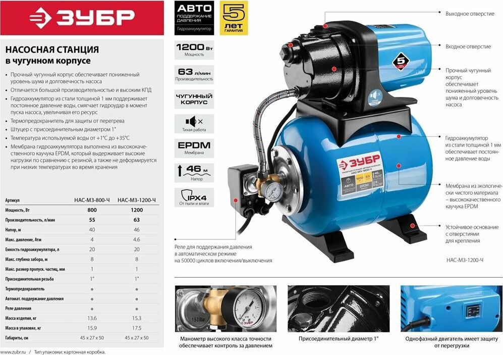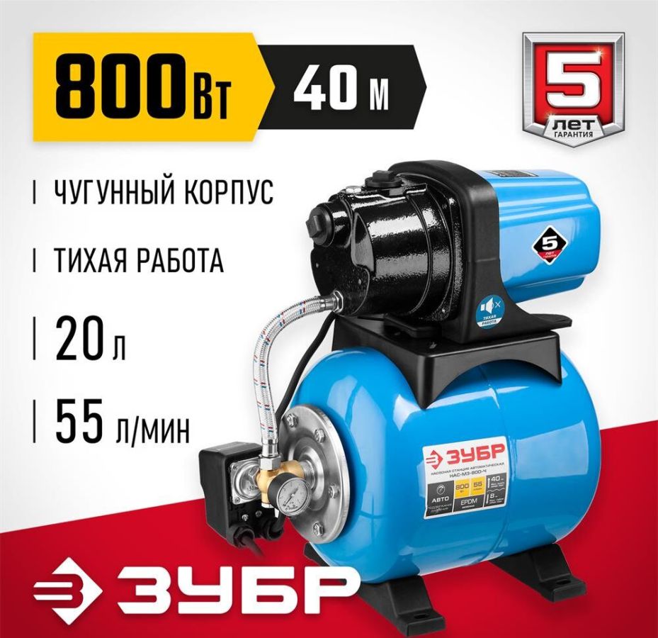 Насосная станция ЗУБР МАСТЕР НАС-М3-800-Ч предназначена для стабильной подачи жидкости. Имеет пропускную способность 55 литров в минуту. Удобна и безопасна в использовании. Присоединительный диаметр 1" обеспечивает легкое подключение трубопровода. Термопредохранитель защищает от перегрева, исключая возможность поломки насоса. Технические характеристики Зубр МАСТЕР НАС-М3-800-Ч Высота подъема, м 40 Мах температура жидкости, °С 35 Мощность, Вт 800 Объем бака, л 20 Производительность, л/мин 55 Трубное соединение, дюйм внутренняя G1 Тип насосная станция Вид поверхностный Защита от сухого хода нет Ротор сухой Для повышения давления есть Эжектор нет Вес, кг 13,6 Габариты, мм 500х430х260 Давление, атм 1.5-3 Допустимая температура жидкости, °С от +1 до +35 Класс защиты IPX4 Напряжение, В 220 Материал корпуса чугун Серия МАСТЕР Глубина всасывания, м 8 Конструкция центробежный