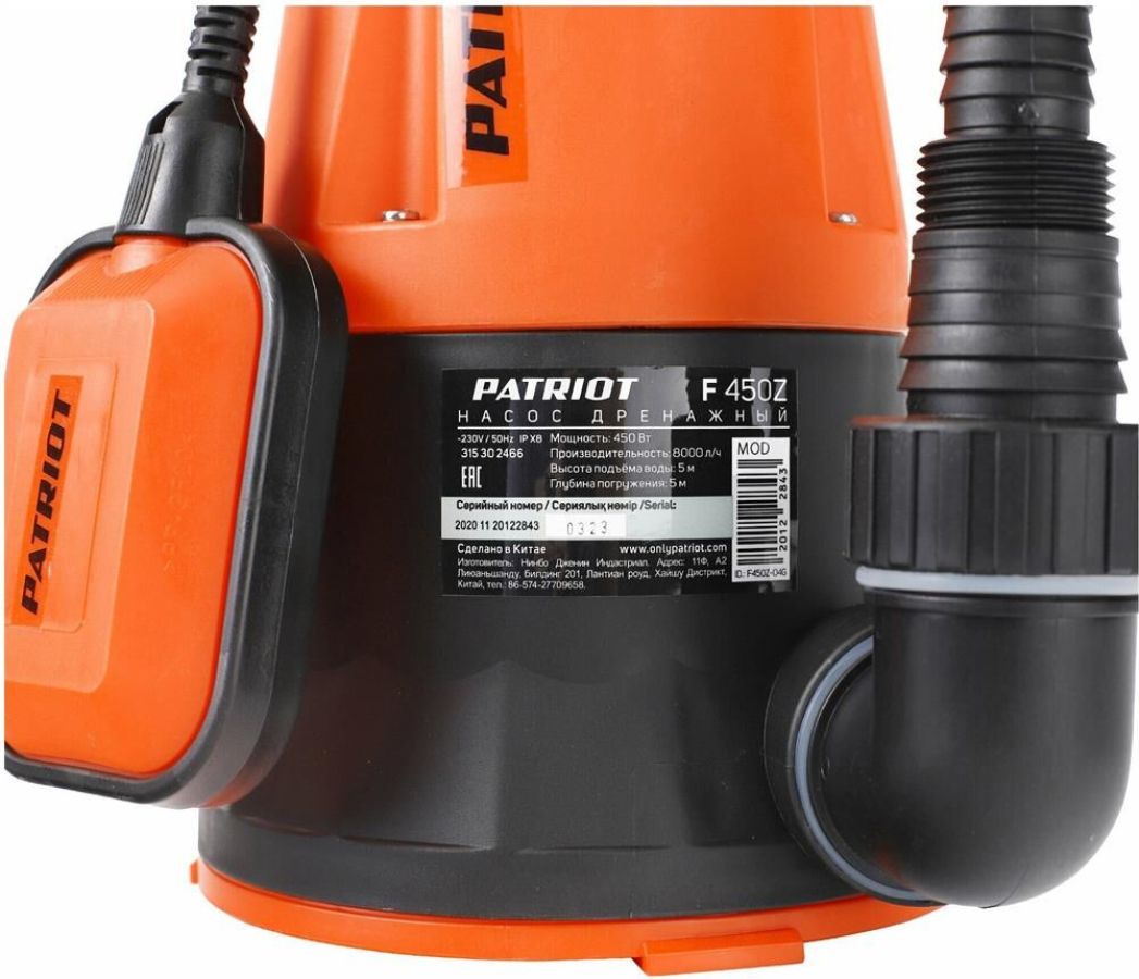 Производительность, л/час 8000. Макс. напор, м 5. Глубина погружения / всасывания, м 5. Мощность двигателя, кВт 0,45. Допустимая температура жидкости, °С 40. Допустимый диаметр твердых частиц, мм 5. Материал корпуса пластик. Защиты от перегрева Да. Соединитель в комплекте елочка 1; елочка 1 1/4; елочка 1 1/2. Качество воды чистая. Защита от сухого хода Да. Вес, кг 3.65.